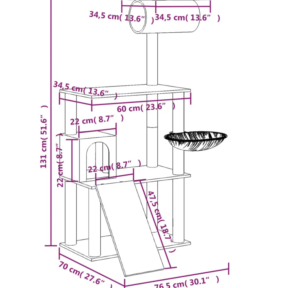 Gardez vos adorables chats amusés sans fin avec cet arbre à chat tout-en-un ! Arbre à chat tout-en-un : le mobilier pour chats à plusieurs niveaux est conçu avec 1 maison, 1 hamac, 1 tunnel, 1 échelle et des plates-formes, offrant un endroit parfait pour que vos chats puissent grimper, se percher, se gratter, se cacher et se détendre aussi.Matériau moelleux et doux : la peluche très épaisse et douce est bien ventilée, résistante aux rayures, super confortable et chaude.Poteaux en sisal naturel : les poteaux en sisal naturel, résistants et solides de l’arbre à chat, sont parfaits pour que vos chats adorés puissent satisfaire leur instinct de grattage et évitent qu’ils n’endommagent pas vos meubles. Remarque :Chaque produit est livré avec un manuel de montage dans la boîte pour un montage facile.