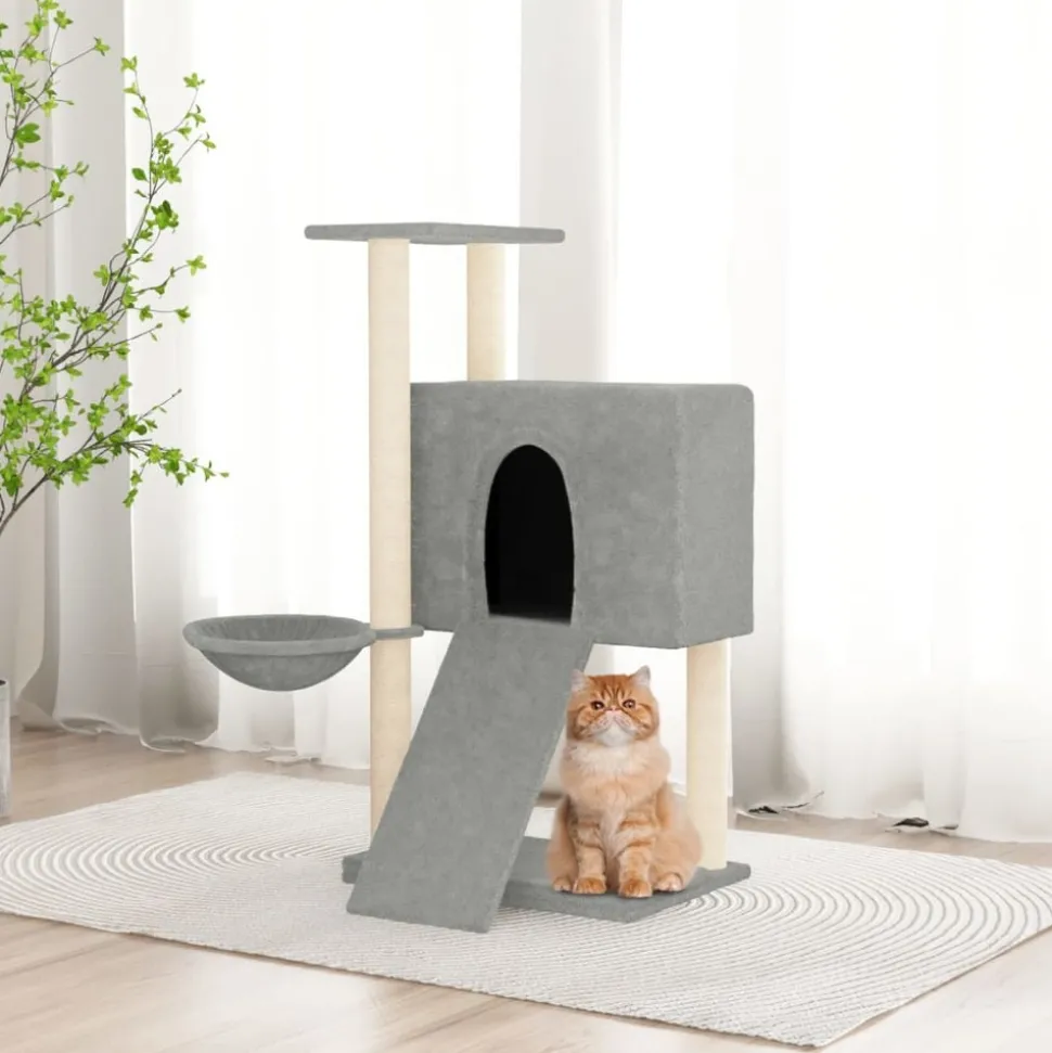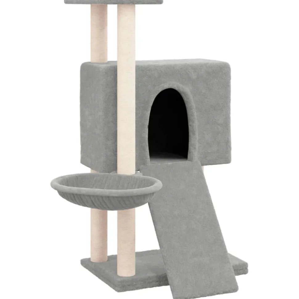 Gardez vos adorables chats amusés sans fin avec cet arbre à chat tout-en-un ! Tour à chat tout-en-un : le mobilier pour chats à plusieurs niveaux est conçu avec 1 maison, 1 hamac, 1 échelle et 1 plate-forme, offrant un endroit parfait pour que vos chats puissent grimper, se percher, se gratter, se cacher et aussi se détendre.Matériau moelleux et doux : la peluche très épaisse et douce est bien ventilée, résistante aux rayures, super confortable et chaude.Poteaux en sisal naturel : les poteaux en sisal naturel, résistants et solides de l’arbre à chat, sont parfaits pour que vos chats adorés puissent satisfaire leur instinct de grattage et évitent qu’ils n’endommagent pas vos meubles. Remarque :Chaque produit est livré avec un manuel de montage dans la boîte pour un montage facile.