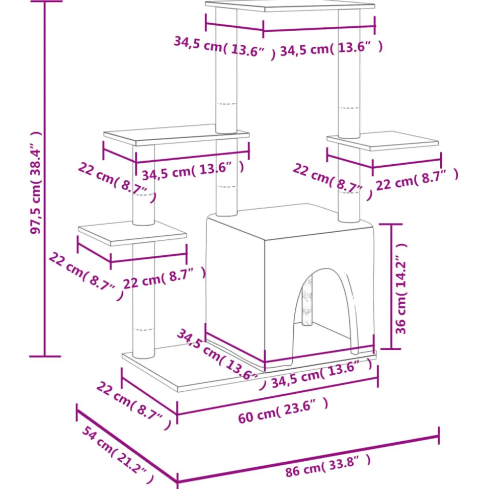 Gardez vos adorables chats amusés sans fin avec cet arbre à chat tout-en-un ! Tour pour chats tout-en-un : le mobilier pour chats à plusieurs niveaux est conçu avec une maison et plates-formes, offrant un endroit parfait pour que vos chats puissent grimper, se percher, se gratter, se cacher et aussi se détendre.Matériau moelleux et doux : la peluche très épaisse et douce est bien ventilée, résistante aux rayures, super confortable et chaude.Poteaux en sisal naturel : les poteaux en sisal naturel, résistants et solides de l’arbre à chat, sont parfaits pour que vos chats adorés puissent satisfaire leur instinct de grattage et évitent qu’ils n’endommagent pas vos meubles.