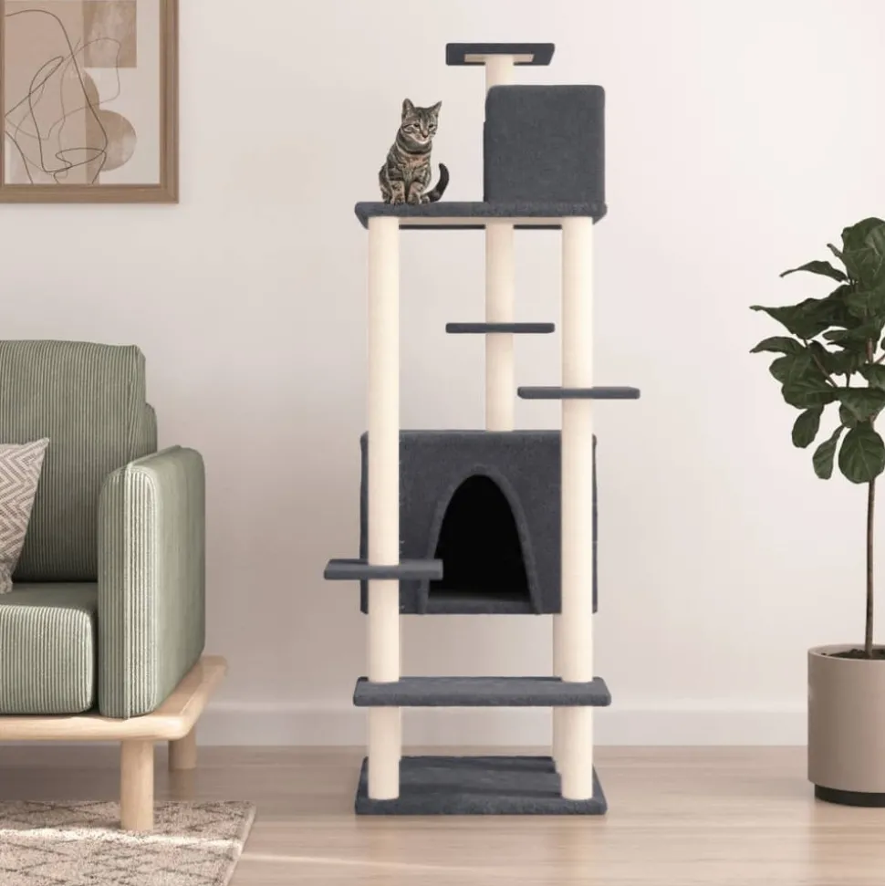 Gardez vos adorables chats amusés sans fin avec cet arbre à chat tout-en-un ! Tour pour chats tout-en-un : le mobilier pour chats à plusieurs niveaux est conçu avec 2 maisons et plates-formes, offrant un endroit parfait pour que vos chats puissent grimper, se percher, se gratter, se cacher et aussi se détendre.Matériau moelleux et doux : la peluche très épaisse et douce est bien ventilée, résistante aux rayures, super confortable et chaude.Poteaux en sisal naturel : les poteaux en sisal naturel, résistants et solides de l’arbre à chat, sont parfaits pour que vos chats adorés puissent satisfaire leur instinct de grattage et évitent qu’ils n’endommagent pas vos meubles.