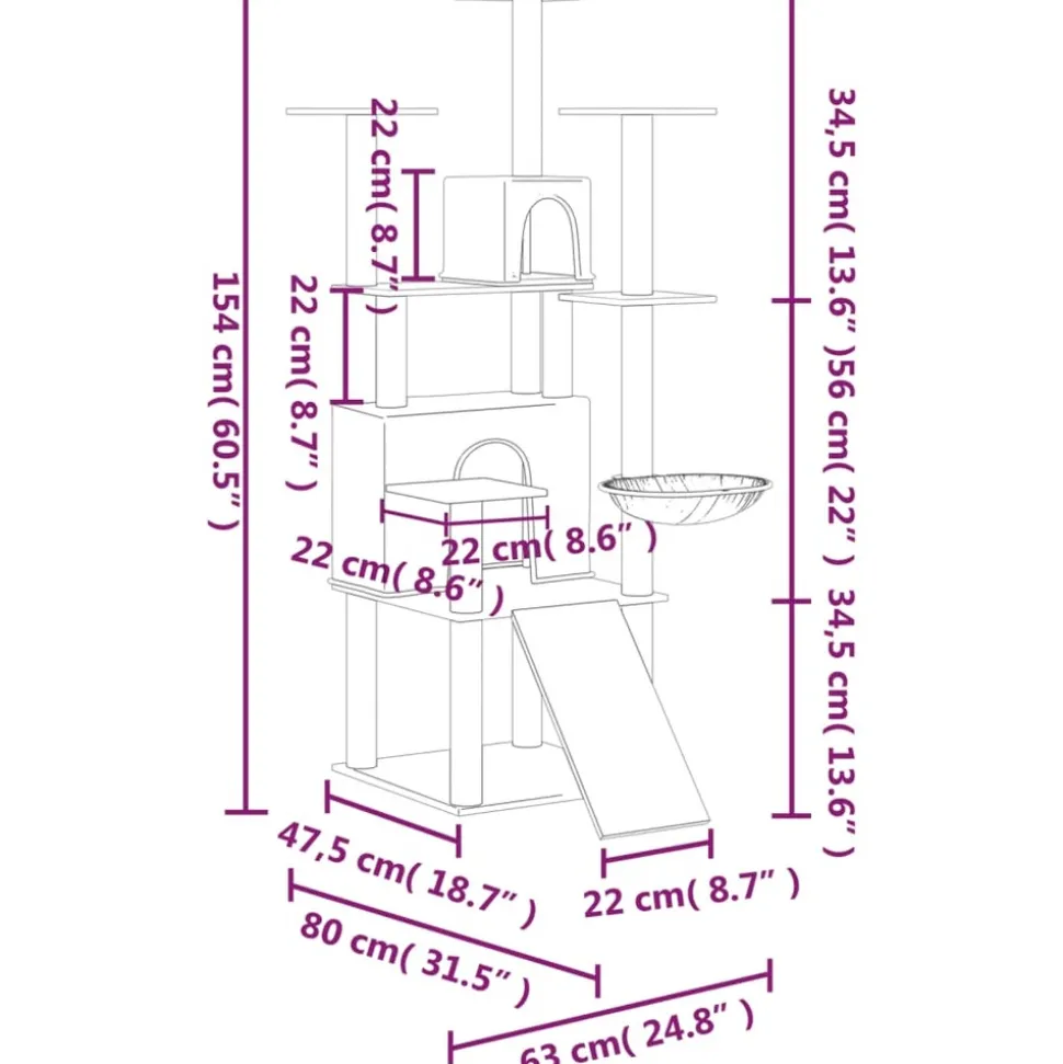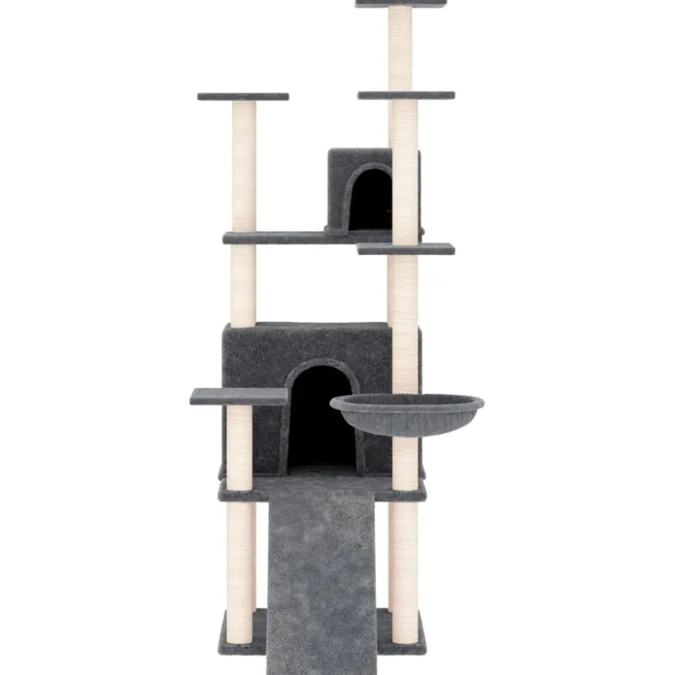 Gardez vos adorables chats amusés sans fin avec cet arbre à chat tout-en-un ! Tour à chat tout-en-un : le mobilier pour chats à plusieurs niveaux est conçu avec 2 maisons, 1 hamac, 1 échelle et des plates-formes, offrant un endroit parfait pour que vos chats puissent grimper, se percher, se gratter, se cacher et aussi se détendre.Matériau moelleux et doux : la peluche très épaisse et douce est bien ventilée, résistante aux rayures, super confortable et chaude.Poteaux en sisal naturel : les poteaux en sisal naturel, résistants et solides de l’arbre à chat, sont parfaits pour que vos chats adorés puissent satisfaire leur instinct de grattage et évitent qu’ils n’endommagent pas vos meubles. Remarque :Chaque produit est livré avec un manuel de montage dans la boîte pour un montage facile.