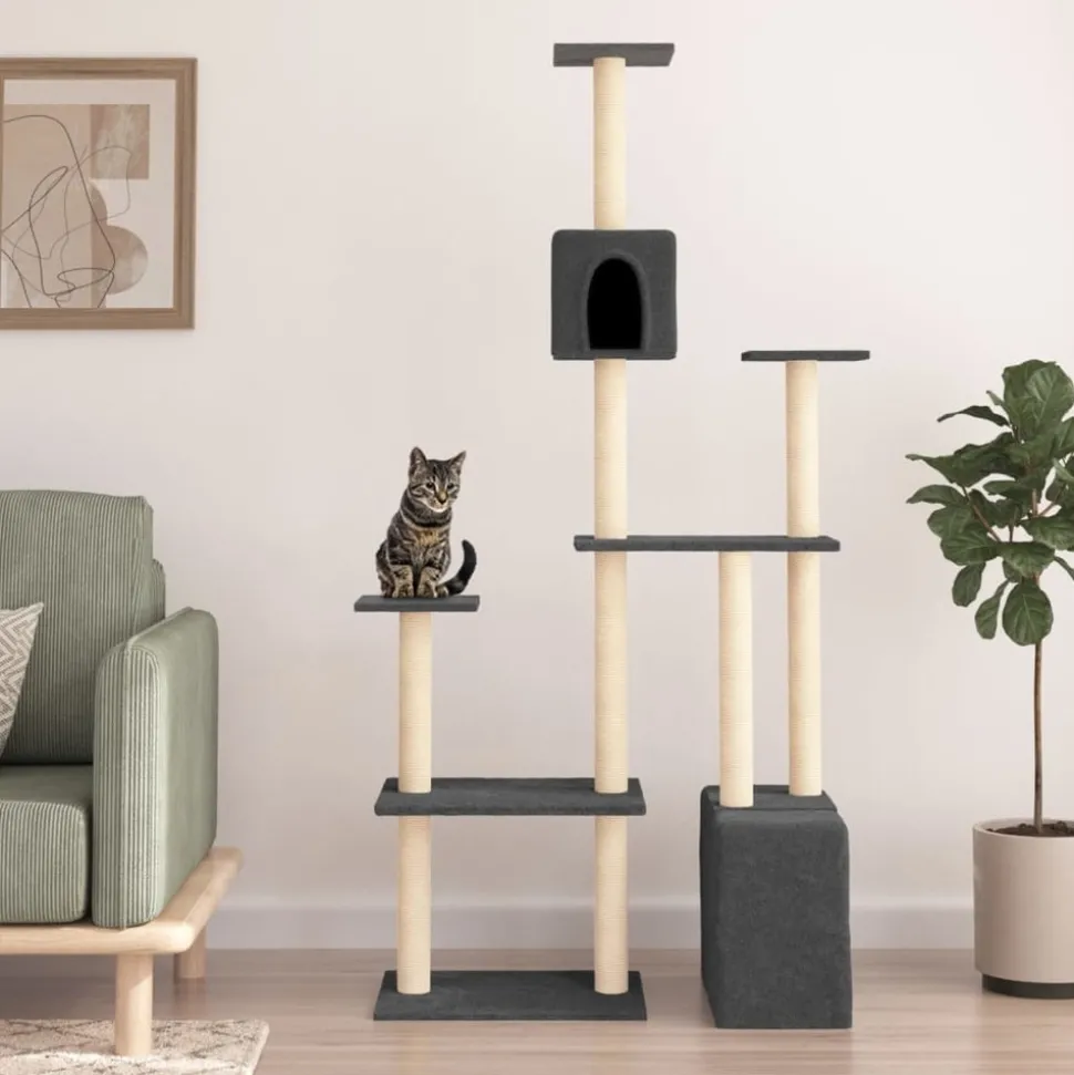 Gardez vos adorables chats amusés sans fin avec cet arbre à chat tout-en-un ! Tour pour chats tout-en-un : le mobilier pour chats à plusieurs niveaux est conçu avec 2 maisons et plates-formes, offrant un endroit parfait pour que vos chats puissent grimper, se percher, se gratter, se cacher et aussi se détendre.Matériau moelleux et doux : la peluche très épaisse et douce est bien ventilée, résistante aux rayures, super confortable et chaude.Poteaux en sisal naturel : les poteaux en sisal naturel, résistants et solides de l’arbre à chat, sont parfaits pour que vos chats adorés puissent satisfaire leur instinct de grattage et évitent qu’ils n’endommagent pas vos meubles.