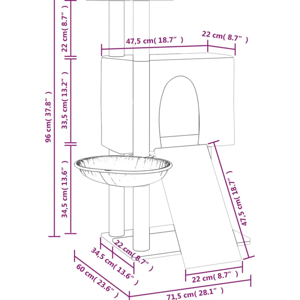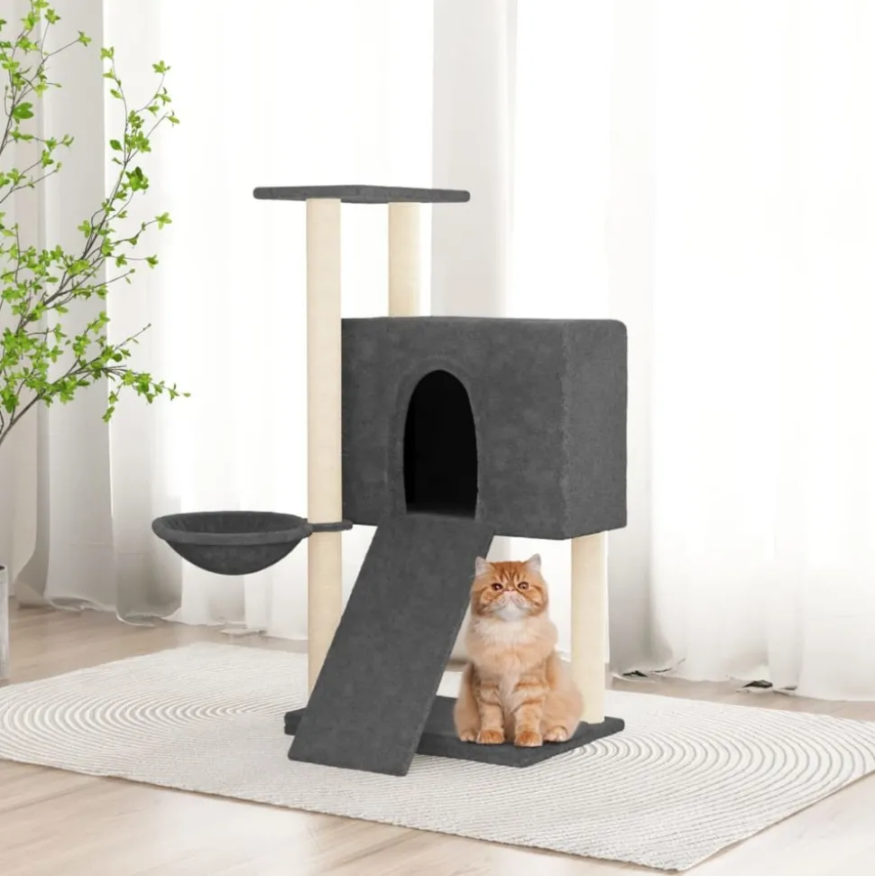 Gardez vos adorables chats amusés sans fin avec cet arbre à chat tout-en-un ! Tour à chat tout-en-un : le mobilier pour chats à plusieurs niveaux est conçu avec 1 maison, 1 hamac, 1 échelle et 1 plate-forme, offrant un endroit parfait pour que vos chats puissent grimper, se percher, se gratter, se cacher et aussi se détendre.Matériau moelleux et doux : la peluche très épaisse et douce est bien ventilée, résistante aux rayures, super confortable et chaude.Poteaux en sisal naturel : les poteaux en sisal naturel, résistants et solides de l’arbre à chat, sont parfaits pour que vos chats adorés puissent satisfaire leur instinct de grattage et évitent qu’ils n’endommagent pas vos meubles. Remarque :Chaque produit est livré avec un manuel de montage dans la boîte pour un montage facile.