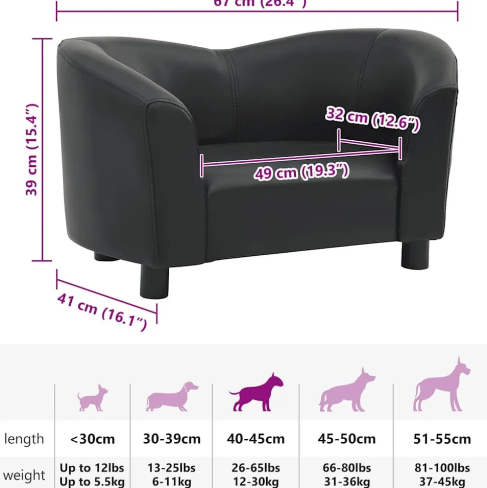 Ce canapé pour chien est sûr de gagner le cœur de votre animal de compagnie ! Votre ami à fourrure sera fier d’avoir son propre canapé. Il peut également être utilisé pour les chats et autres petits animaux. Ce canapé pour animaux de compagnie, doté d’un cadre en bois et recouvert de similicuir facile à nettoyer, offre un endroit confortable pour vos petits amis bien-aimés. Les pieds en bois avec un design antidérapant ajoutent stabilité et robustesse à toute la construction. De plus, le corps d’extérieur est extrêmement robuste, offrant un endroit sûr pour votre animal de compagnie pour se détendre. Remarque importante : Veuillez vous-assurer que la taille convient à vos animaux de compagnie avant de faire l’achat.