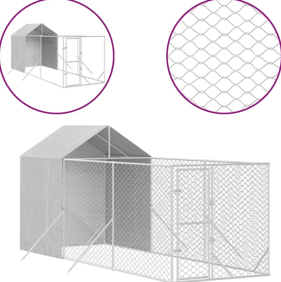 Ce chenil d’extérieur pratique et spacieux avec toit est un choix parfait comme enclos extérieur pour garder vos animaux de compagnie en sécurité et à l’aise. Niche polyvalente : la niche pour chien dispose d’un espace spacieux qui permet à vos chiens, poules, lapins, canards et autres petits animaux de jouer, de faire de l’exercice, de s’entraîner ou tout simplement de se reposer.Construction robuste : fabriquée en acier galvanisé très résistant, la cage pour chien est robuste et durable.Porte verrouillable : la niche extérieure pour chien a une porte verrouillable pour protéger vos petits animaux des prédateurs et autres dangers à l’extérieur.Toit et parois latérales de protection : fabriqués en polyéthylène, le toit et les parois latérales sont résistants à l’eau et aux UV. Il offre une protection contre le soleil, la pluie, la neige, ainsi que d’autres conditions météorologiques.Conception en maille : la conception en maille du chenil pour chiens assure des conditions de vie sèches et ventilées.