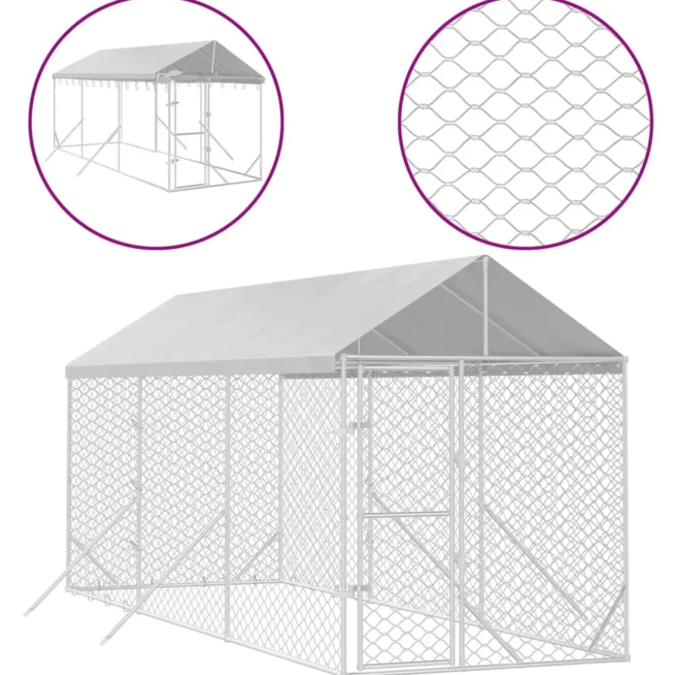 Ce chenil d’extérieur pratique et spacieux avec toit est un choix parfait comme enclos extérieur pour garder vos animaux de compagnie en sécurité et à l’aise. Niche polyvalente : la niche pour chien dispose d’un espace spacieux qui permet à vos chiens, poules, lapins, canards et autres petits animaux de jouer, de faire de l’exercice, de s’entraîner ou tout simplement de se reposer.Construction robuste : fabriquée en acier galvanisé très résistant, la cage pour chien est robuste et durable.Porte verrouillable : la niche extérieure pour chien a une porte verrouillable pour protéger vos petits animaux des prédateurs et autres dangers à l’extérieur.Toit protecteur : fabriqué en polyéthylène, le toit est résistant à l’eau et aux UV. Il offre une protection contre le soleil, la pluie, la neige et d’autres conditions météorologiques.Conception en maille : la conception en maille du chenil pour chiens assure des conditions de vie sèches et ventilées.