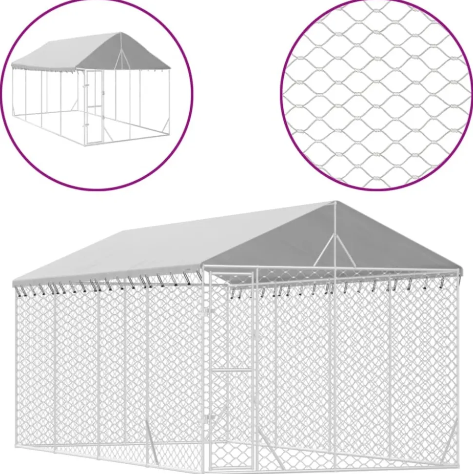 Ce chenil d’extérieur pratique et spacieux avec toit est un choix parfait comme enclos extérieur pour garder vos animaux de compagnie en sécurité et à l’aise. Niche polyvalente : la niche pour chien dispose d’un espace spacieux qui permet à vos chiens, poules, lapins, canards et autres petits animaux de jouer, de faire de l’exercice, de s’entraîner ou tout simplement de se reposer.Construction robuste : fabriquée en acier galvanisé très résistant, la cage pour chien est robuste et durable.Porte verrouillable : la niche extérieure pour chien a une porte verrouillable pour protéger vos petits animaux des prédateurs et autres dangers à l’extérieur.Toit protecteur : fabriqué en polyéthylène, le toit est résistant à l’eau et aux UV. Il offre une protection contre le soleil, la pluie, la neige et d’autres conditions météorologiques.Conception en maille : la conception en maille du chenil pour chiens assure des conditions de vie sèches et ventilées.