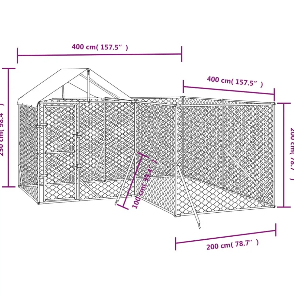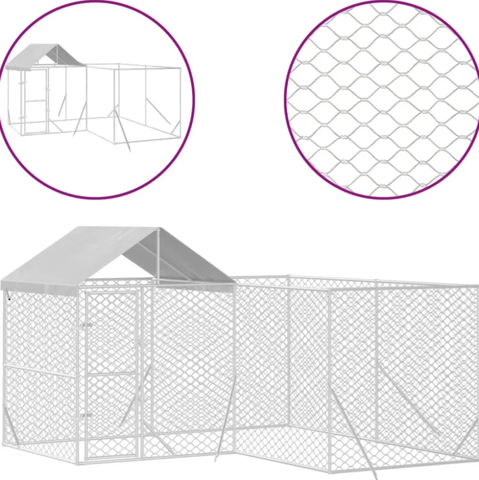 Ce chenil d’extérieur pratique et spacieux avec toit est un choix parfait comme enclos extérieur pour garder vos animaux de compagnie en sécurité et à l’aise. Niche polyvalente : la niche pour chien dispose d’un espace spacieux qui permet à vos chiens, poules, lapins, canards et autres petits animaux de jouer, de faire de l’exercice, de s’entraîner ou tout simplement de se reposer.Construction robuste : fabriquée en acier galvanisé très résistant, la cage pour chien est robuste et durable.Porte verrouillable : la niche extérieure pour chien a une porte verrouillable pour protéger vos petits animaux des prédateurs et autres dangers à l’extérieur.Toit protecteur : fabriqué en polyéthylène, le toit est résistant à l’eau et aux UV. Il offre une protection contre le soleil, la pluie, la neige et d’autres conditions météorologiques.Conception en maille : la conception en maille du chenil pour chiens assure des conditions de vie sèches et ventilées.