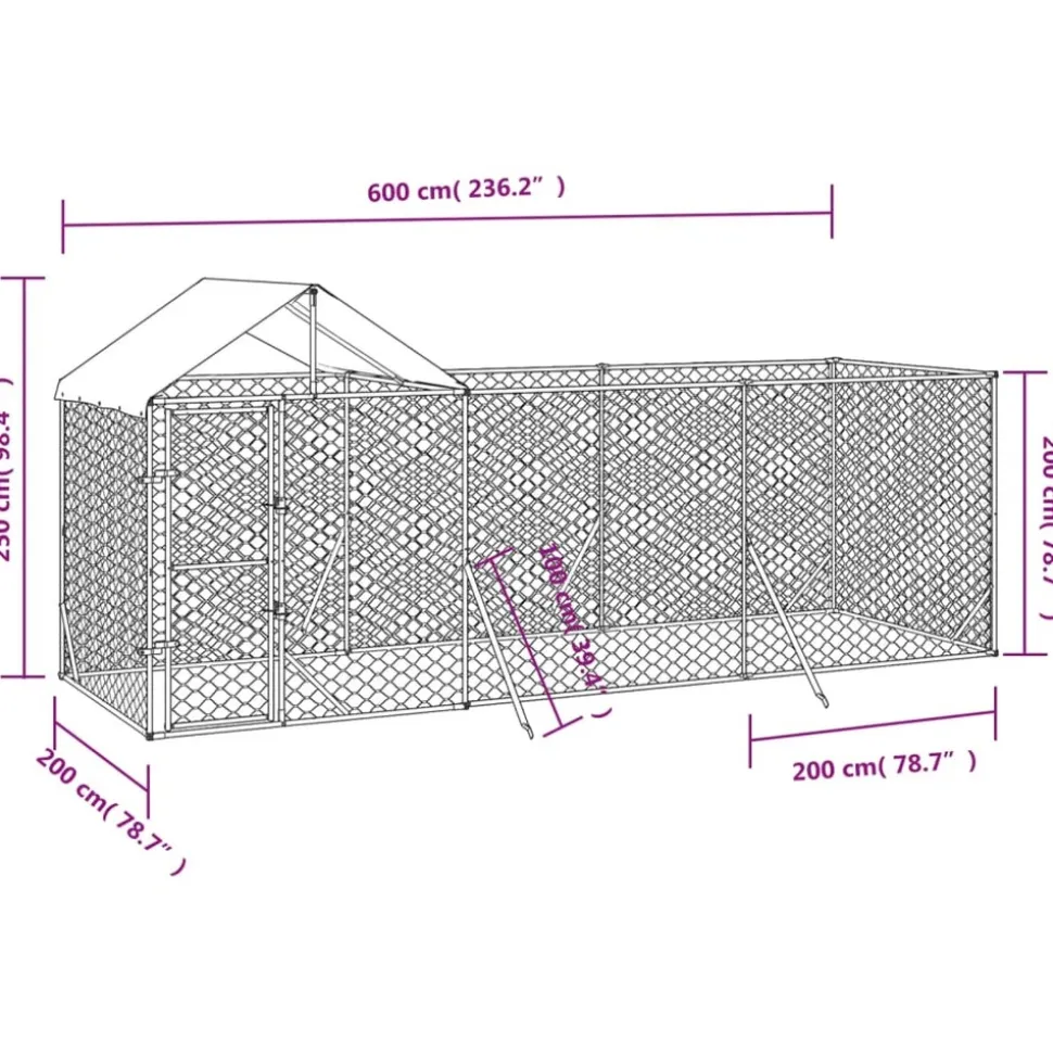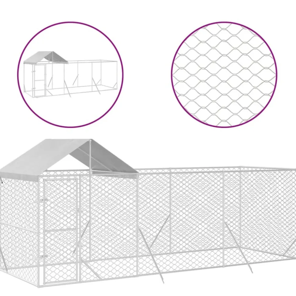 Ce chenil d’extérieur pratique et spacieux avec toit est un choix parfait comme enclos extérieur pour garder vos animaux de compagnie en sécurité et à l’aise. Niche polyvalente : la niche pour chien dispose d’un espace spacieux qui permet à vos chiens, poules, lapins, canards et autres petits animaux de jouer, de faire de l’exercice, de s’entraîner ou tout simplement de se reposer.Construction robuste : fabriquée en acier galvanisé très résistant, la cage pour chien est robuste et durable.Porte verrouillable : la niche extérieure pour chien a une porte verrouillable pour protéger vos petits animaux des prédateurs et autres dangers à l’extérieur.Toit protecteur : fabriqué en polyéthylène, le toit est résistant à l’eau et aux UV. Il offre une protection contre le soleil, la pluie, la neige et d’autres conditions météorologiques.Conception en maille : la conception en maille du chenil pour chiens assure des conditions de vie sèches et ventilées.