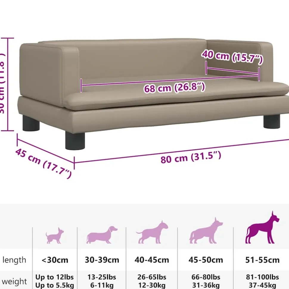 Offrez à votre ami à fourrure un endroit chaud et confortable pour se détendre avec ce lit pour chiens ! Matériau confortable et doux : le canapé pour animaux de compagnie est rembourré de mousse épaisse et douce et recouvert de similicuir, offrant un soutien suffisant et un confort supérieur pour que votre adorable animal de compagnie puisse s’y reposer.Cadre robuste et durable : le cadre en bois de pin massif assure la robustesse et la durabilité du canapé pour chien. Les quatre pieds ajoutent également une stabilité supplémentaire.Nettoyage facile : le revêtement en similicuir de ce canapé pour chien est imperméable, résistant à la saleté et facile à essuyer et à nettoyer.Design élégant : ce canapé pour chien s’adapte parfaitement à tous les thèmes de décoration et constitue un excellent complément à votre salon ou à votre chambre à coucher. Remarque :Veuillez mesurer la longueur du corps de votre animal de compagnie avant d’acheter.