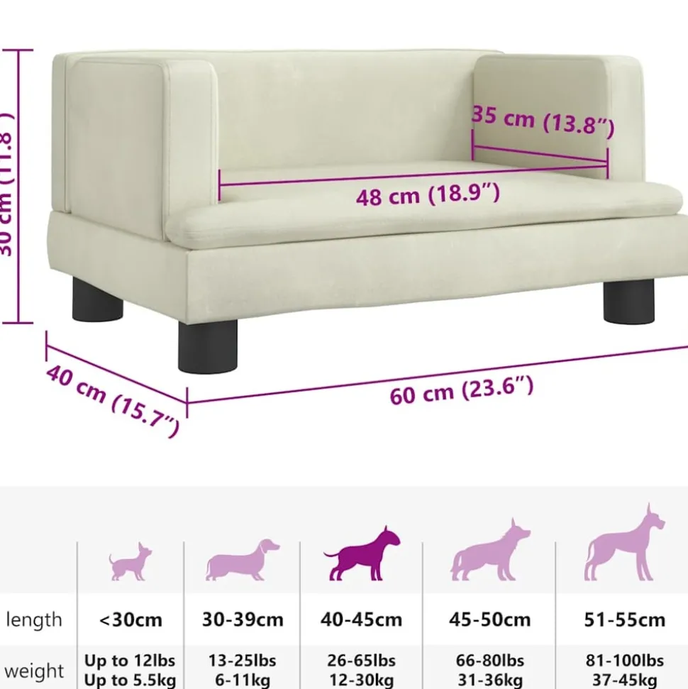 Offrez à votre ami à fourrure un endroit chaud et confortable pour se détendre avec ce lit pour chiens ! Matériau confortable et doux : le canapé pour animal de compagnie est rembourré de mousse épaisse et douce et recouvert de velours, offrant un soutien suffisant et un confort supérieur pour que votre adorable animal de compagnie puisse s’y reposer.Cadre robuste et durable : le cadre en bois de pin massif assure la robustesse et la durabilité du canapé pour chien. Les quatre pieds ajoutent également une stabilité supplémentaire.Design élégant : ce canapé pour chien s’adapte parfaitement à tous les thèmes de décoration et constitue un excellent complément à votre salon ou à votre chambre à coucher. Remarque :Veuillez mesurer la longueur du corps de votre animal de compagnie avant d’acheter.