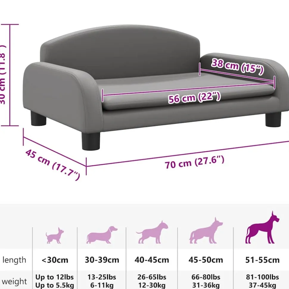 Offrez à votre ami à fourrure un endroit chaud et confortable pour se détendre avec ce lit pour chiens ! Matériau confortable et doux : le canapé pour animaux de compagnie est rembourré de mousse épaisse et douce et recouvert de similicuir, offrant un soutien suffisant et un confort supérieur pour que votre adorable animal de compagnie puisse s’y reposer.Cadre robuste et durable : le cadre en bois de pin massif assure la robustesse et la durabilité du canapé pour chien. Les quatre pieds ajoutent également une stabilité supplémentaire.Nettoyage facile : le revêtement en similicuir de ce canapé pour chien est imperméable, résistant à la saleté et facile à essuyer et à nettoyer.Design élégant : ce canapé pour chien s’adapte parfaitement à tous les thèmes de décoration et constitue un excellent complément à votre salon ou à votre chambre à coucher. Remarque :Veuillez mesurer la longueur du corps de votre animal de compagnie avant d’acheter.