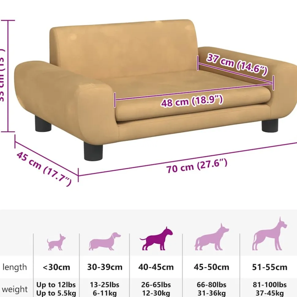 Offrez à votre ami à fourrure un endroit chaud et confortable pour se détendre avec ce lit pour chiens ! Matériau confortable et doux : le canapé pour animal de compagnie est rembourré de mousse épaisse et douce et recouvert de velours, offrant un soutien suffisant et un confort supérieur pour que votre adorable animal de compagnie puisse s’y reposer.Cadre robuste et durable : le cadre en bois de pin massif assure la robustesse et la durabilité du canapé pour chien. Les quatre pieds ajoutent également une stabilité supplémentaire.Design élégant : ce canapé pour chien s’adapte parfaitement à tous les thèmes de décoration et constitue un excellent complément à votre salon ou à votre chambre à coucher. Remarque :Veuillez mesurer la longueur du corps de votre animal de compagnie avant d’acheter.