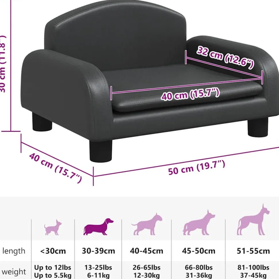 Offrez à votre ami à fourrure un endroit chaud et confortable pour se détendre avec ce lit pour chiens ! Matériau confortable et doux : le canapé pour animaux de compagnie est rembourré de mousse épaisse et douce et recouvert de similicuir, offrant un soutien suffisant et un confort supérieur pour que votre adorable animal de compagnie puisse s’y reposer.Cadre robuste et durable : le cadre en bois de pin massif assure la robustesse et la durabilité du canapé pour chien. Les quatre pieds ajoutent également une stabilité supplémentaire.Nettoyage facile : le revêtement en similicuir de ce canapé pour chien est imperméable, résistant à la saleté et facile à essuyer et à nettoyer.Design élégant : ce canapé pour chien s’adapte parfaitement à tous les thèmes de décoration et constitue un excellent complément à votre salon ou à votre chambre à coucher. Remarque :Veuillez mesurer la longueur du corps de votre animal de compagnie avant d’acheter.