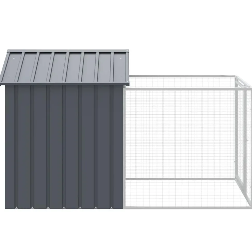 Offrez sécurité et confort à vos compagnons à quatre pattes grâce à cette niche avec enclos. Utilisation polyvalente : Associée à l’enclos allongé, cette niche polyvalente offre un grand espace à votre animal. Elle offre de multiples utilisations : jouer, faire de l’exercice, dresser ou simplement assurer la sécurité de votre chiot. Ce sera le paradis de jeu idéal pour vos amis à quatre pattes !Construction durable : Grâce à sa construction robuste en acier galvanisé, la niche pour chien est durable et conçue pour durer.Conception en maille : La conception en maille de l’enclos prolongé permet d’éviter les méfaits et les accidents inattendus tout en permettant la ventilation.Toit pratique : Le toit de la cage protège le chiot du soleil, de la pluie, de la neige et d’autres conditions météorologiques.Accès pratique : Il y a une entrée à la maisonnette et une porte avec un loquet sur l’enclos prolongé, toutes deux facilitant l’entrée et la sortie.Bon à savoir :Pour éviter les dommages causés par une forte accumulation de neige, nous vous recommandons de dégager le toit régulièrement en hiver.
