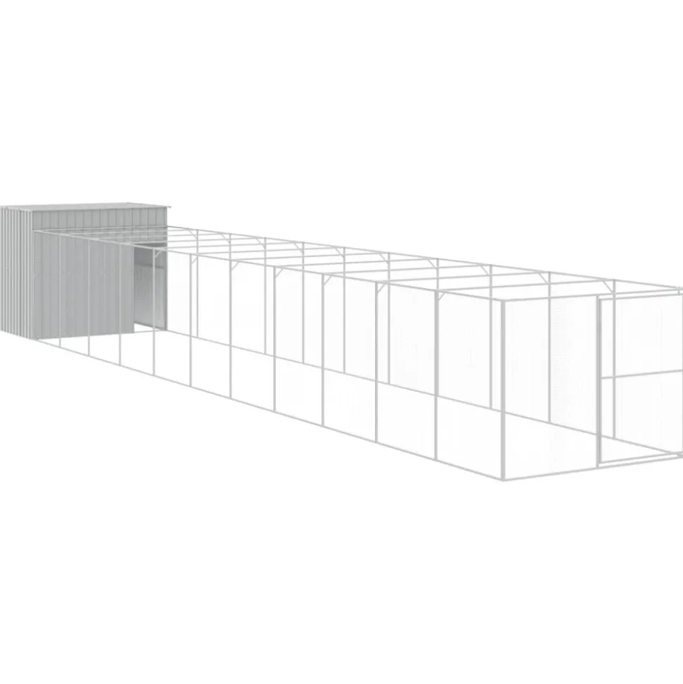 Offrez sécurité et confort à vos compagnons à quatre pattes grâce à cette niche avec enclos. Utilisation polyvalente : Associée à l’enclos allongé, cette niche polyvalente offre un grand espace à votre animal. Elle offre de multiples utilisations : jouer, faire de l’exercice, dresser ou simplement assurer la sécurité de votre chiot. Ce sera le paradis de jeu idéal pour vos amis à quatre pattes !Construction durable : Grâce à sa construction robuste en acier galvanisé, la niche pour chien est durable et conçue pour durer.Conception en maille : La conception en maille de l’enclos prolongé permet d’éviter les méfaits et les accidents inattendus tout en permettant la ventilation.Toit pratique : Le toit de la cage protège le chiot du soleil, de la pluie, de la neige et d’autres conditions météorologiques.Accès pratique : Il y a une entrée à la maisonnette et une porte avec un loquet sur l’enclos prolongé, toutes deux facilitant l’entrée et la sortie.Bon à savoir :Pour éviter les dommages causés par une forte accumulation de neige, nous vous recommandons de dégager le toit régulièrement en hiver.