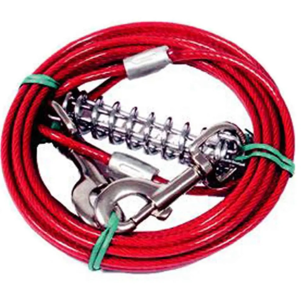 Dans le jardin, en pique-nique ou au parc, n’attachez plus votre chien avec des systèmes improvisés de cordages ou de laisses trop courtes, mais optez plutôt pour ce câble en métal gainé de rouge. Un mousqueton de chaque côté et un amortisseur d’un côté pour attacher en toute sécurité et gérer les tractions de votre chien. Vous pourrez à loisir attacher votre chien autour d’un arbre, d’un banc ou d’un poteau, sans risque pour votre animal de s’emmêler ou de s’étrangler. L600cm.