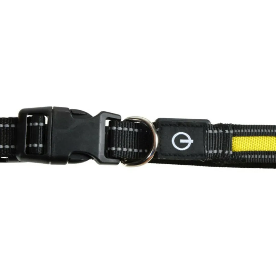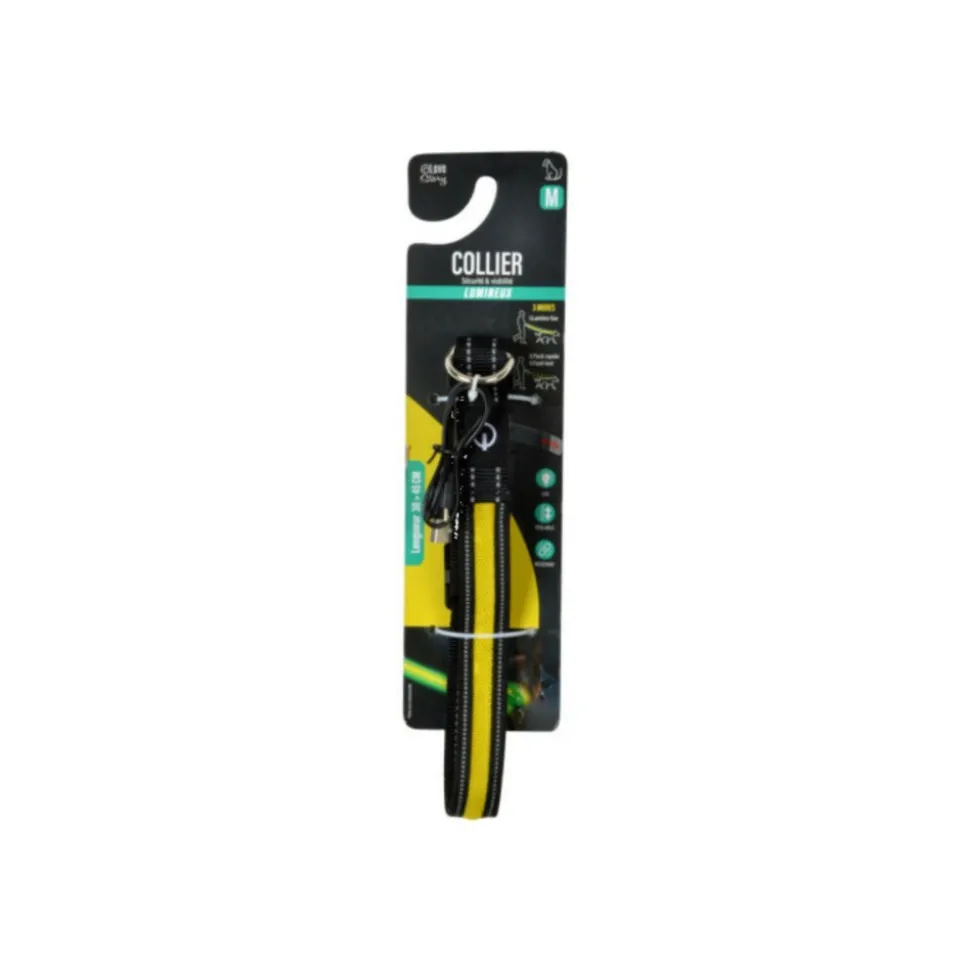 Dimensions : L. 30-45 x l. 2,5 cmSpécificités :Ajustable & RéfléchissantCollier lumineux pour chien3 modes (lumière fixe, flash rapide et flash lent)Lumières LEDRechargeable par USBTaille MPoids : 0,09 kgCouleur : Jaune