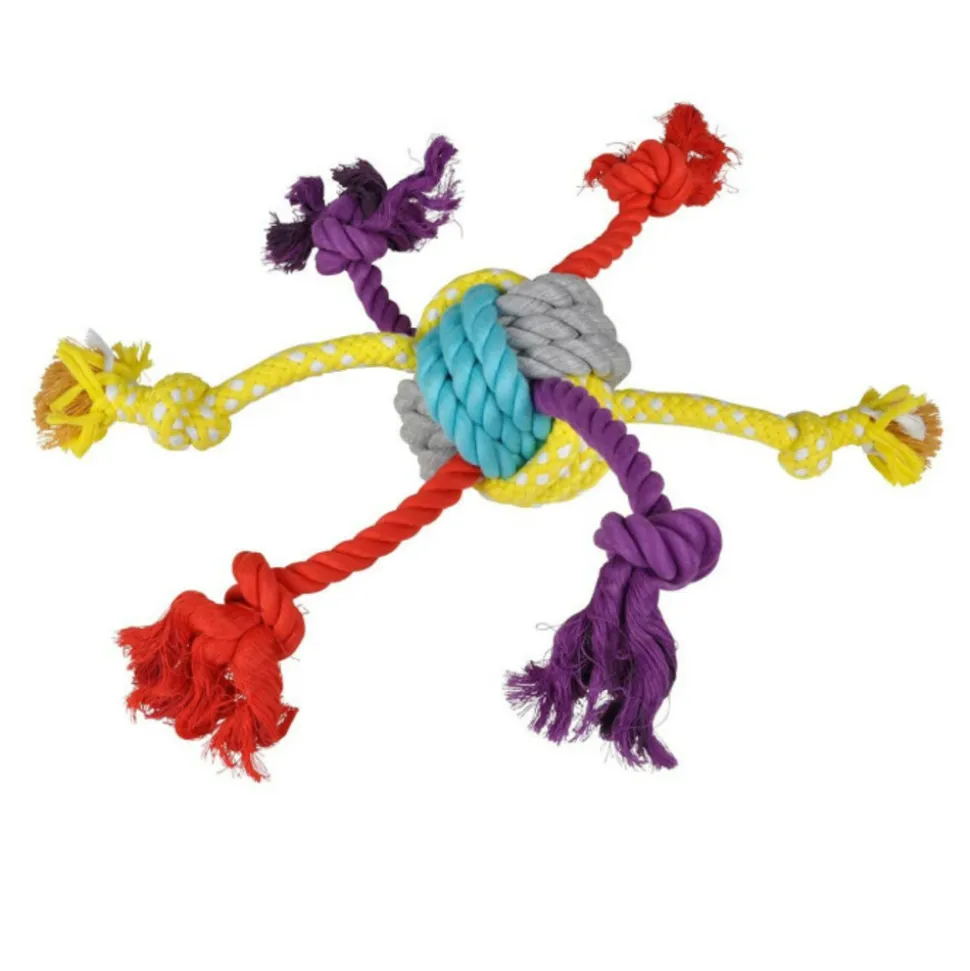 Dimensions : D. 11 x H. 42 cmMatière : CotonSpécificités : Pratique & UtileJouet pour ChienCorde & 6 NoeudsPoids : 0,571 kgCouleur : Multicolore