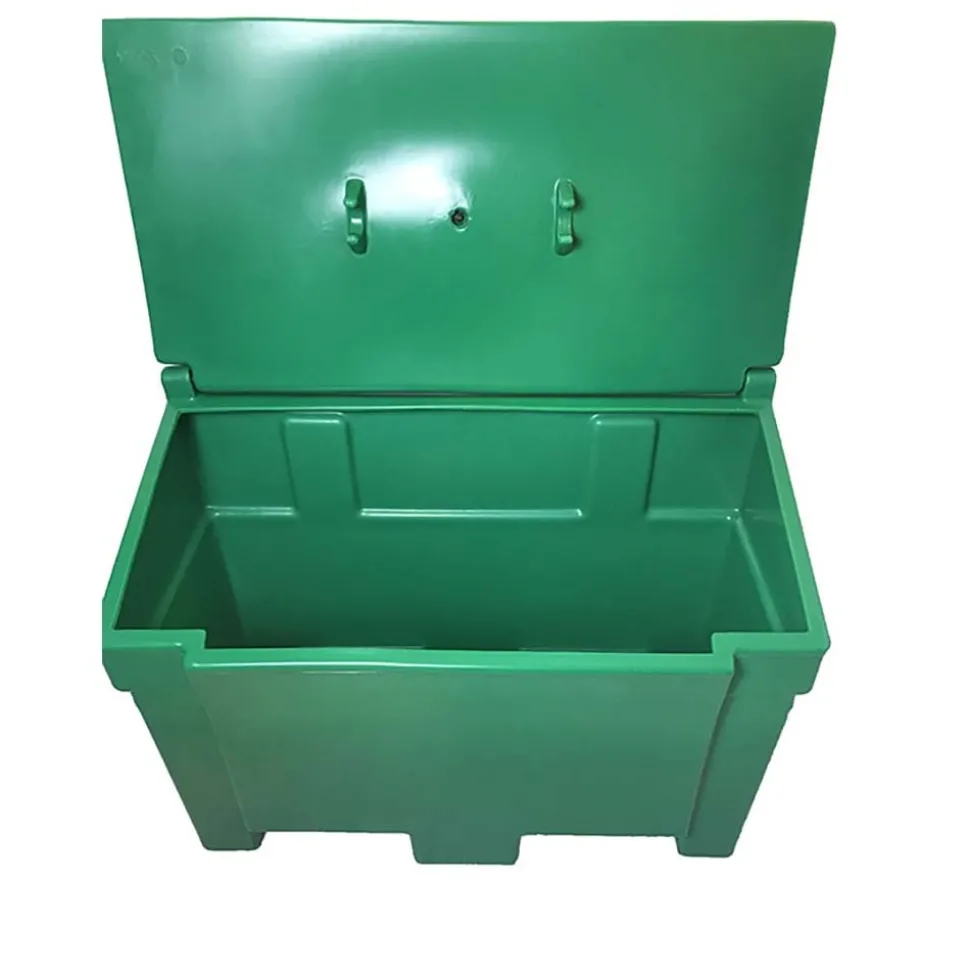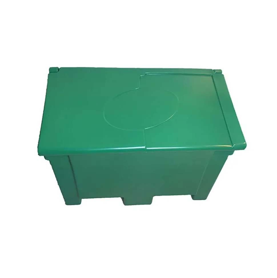 Bac de stockage de denrés animales/multi usages de capacité de 200L en polyéthylène haute densité traité anti UV de coloris vert-pour stockage en toute sécurité et au sec de denreés animales et/ou d’outils.