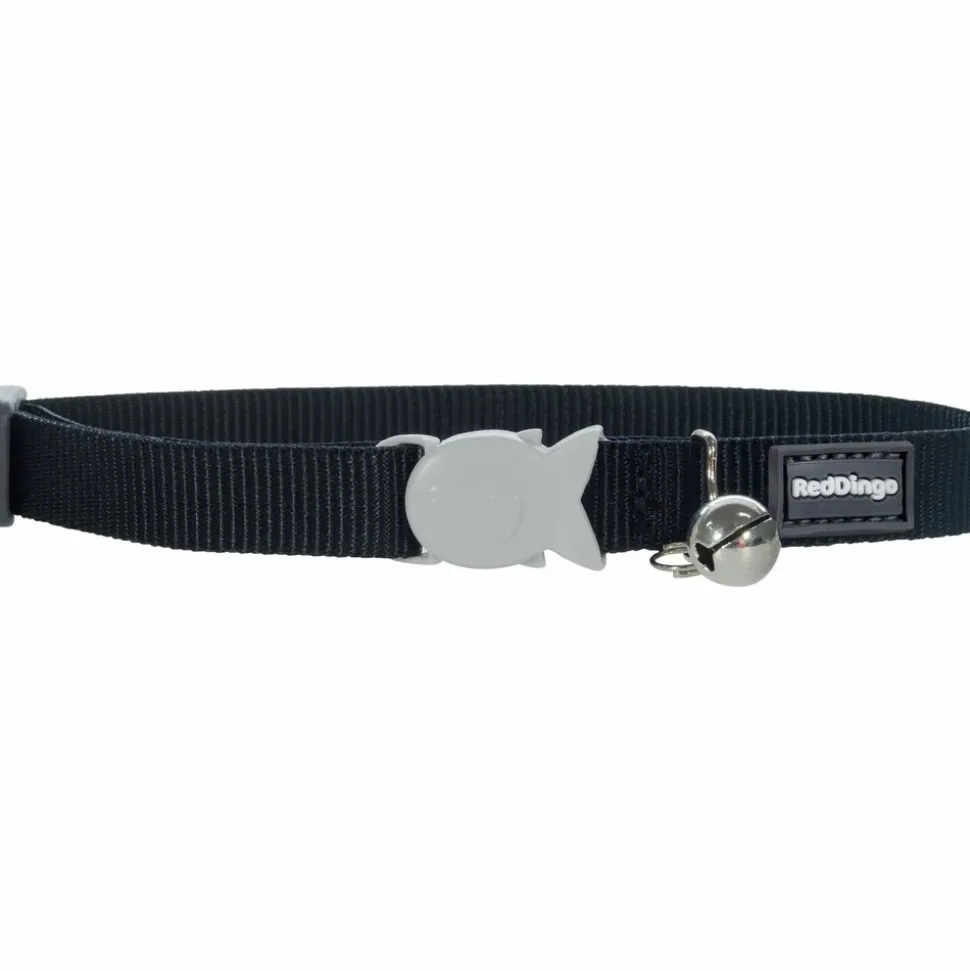 Collier en nylon red dingo pour chat avec boucle de securite.Systeme anti-etranglement en forme de poisson lorsque votre chat exerce une traction superieure a 2 kg alors le collier souvre automatiquement.Collier en nylon tresse resistant et de tres belle qualite.Livre avec une clochette.La boucle en d permet dy accrocher une medaille avec vos coordonnees.Collier ajustable longueur reglable de 20 a 32 cm – largeur 12 mm.Disponible en 7 couleurs rouge bleu violet noir orange turquoise et vertensemble possible avec le harnais et la laisse.