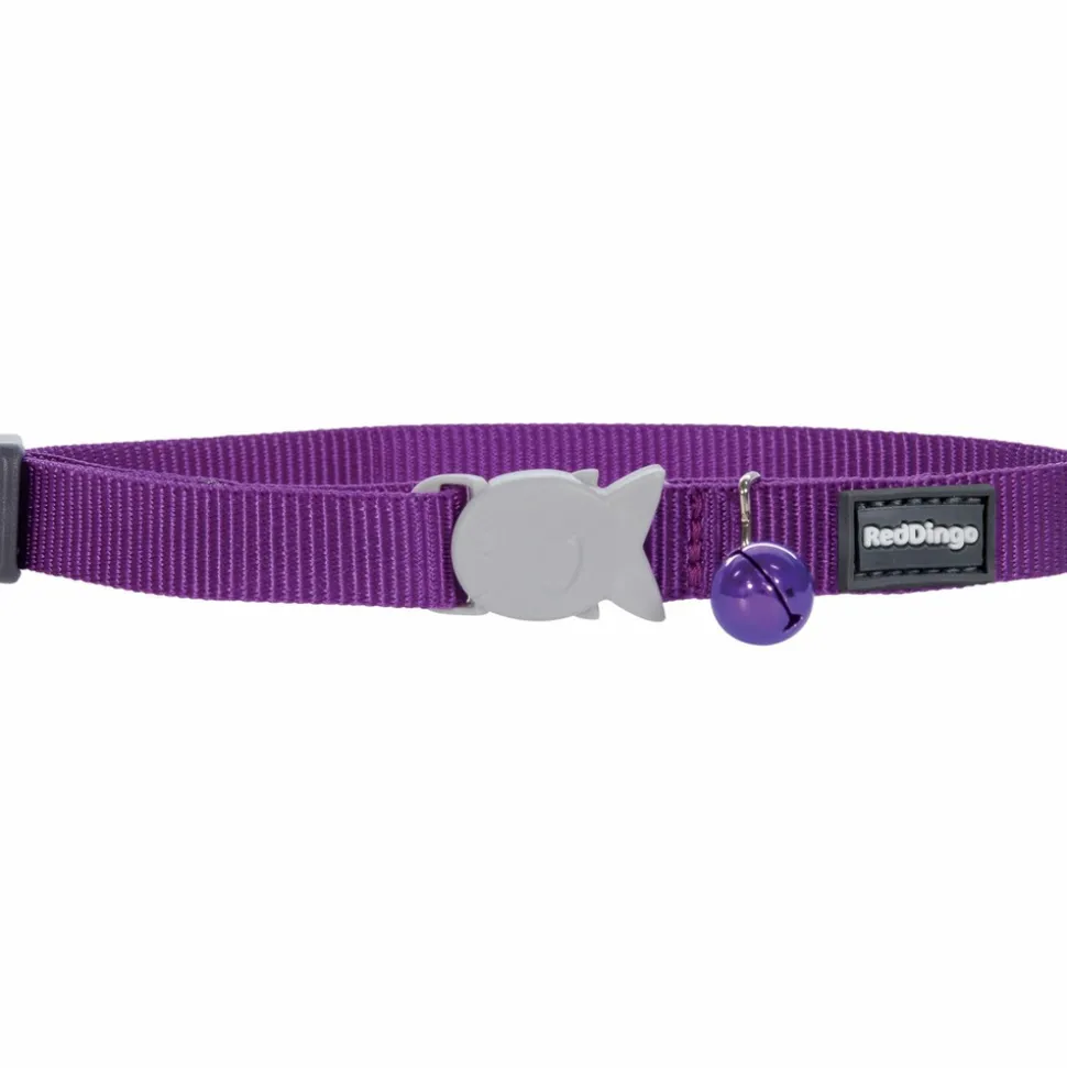Collier en nylon red dingo pour chat avec boucle de securite.Systeme anti-etranglement en forme de poisson lorsque votre chat exerce une traction superieure a 2 kg alors le collier souvre automatiquement.Collier en nylon tresse resistant et de tres belle qualite.Livre avec une clochette.La boucle en d permet dy accrocher une medaille avec vos coordonnees.Collier ajustable longueur reglable de 20 a 32 cm – largeur 12 mm.Disponible en 7 couleurs rouge bleu violet noir orange turquoise et vertensemble possible avec le harnais et la laisse.