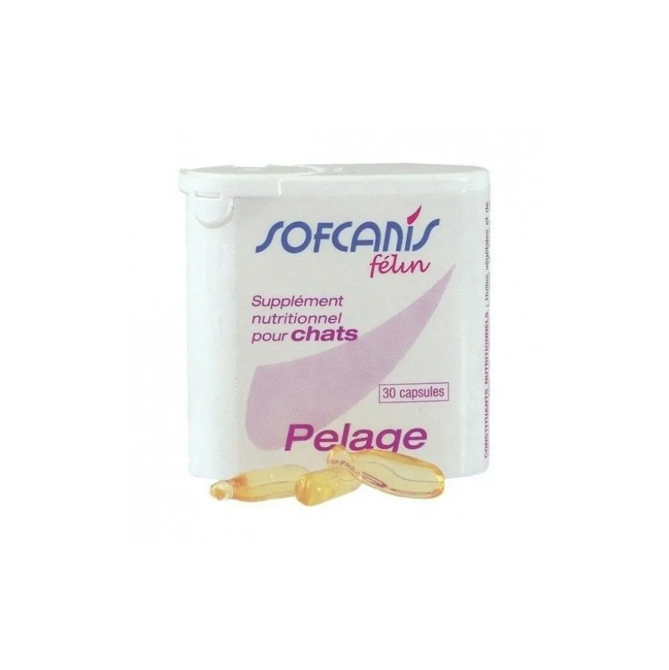 Le complément alimentaire SOFCANIS FELIN PELAGE bénéficie dun apport associé dacides gras poly-insaturés des séries oméga 6 et 3 via les huiles végétales et la chair de poisson sélectionnées et stabilisées. Ces éléments sont indispensable à la bonne santé de la peau de votre chat.