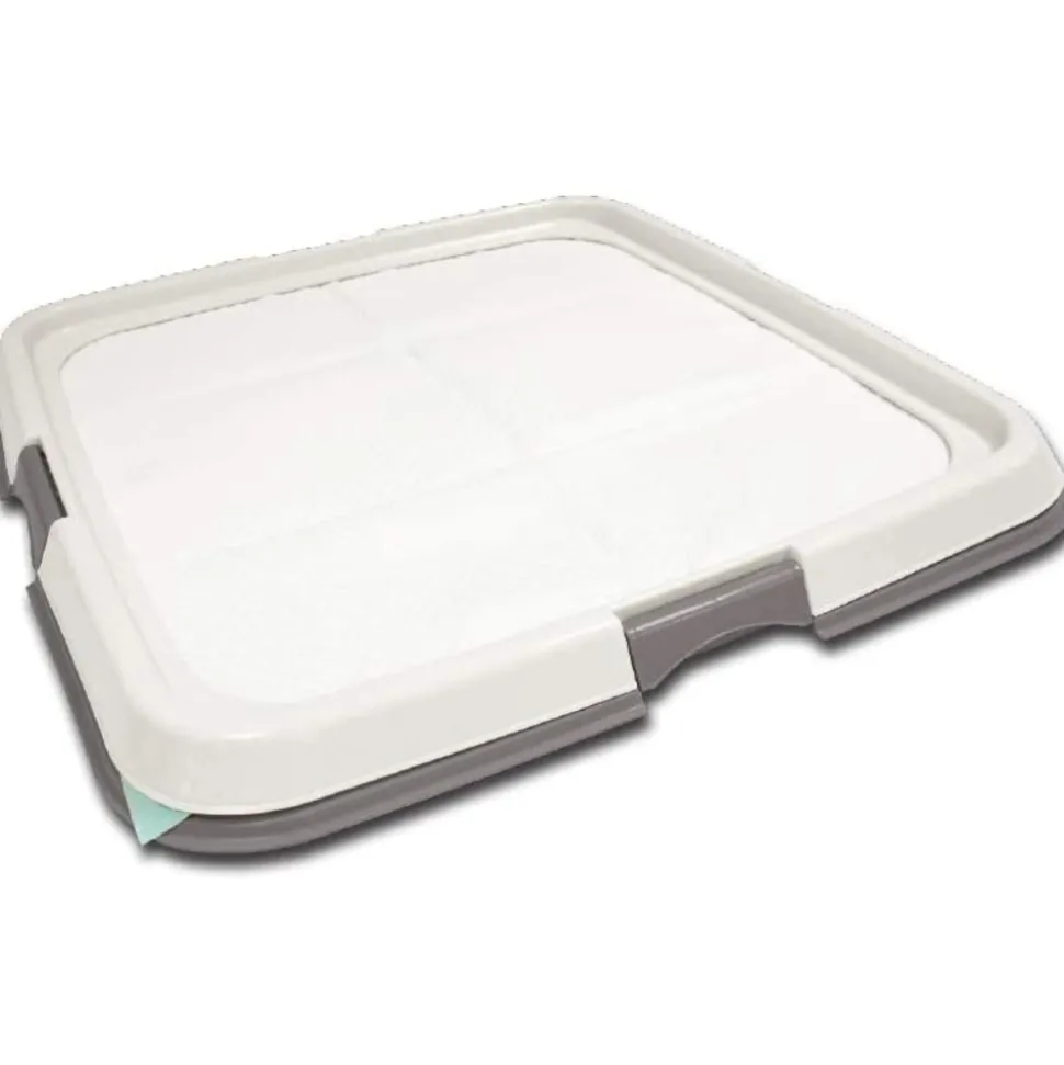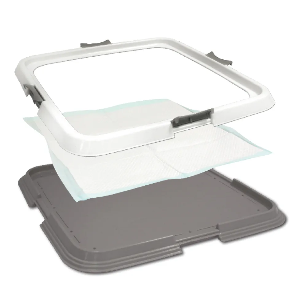 Si vous utilisez des tapis absorbants pour votre chiot ou votre chien âgé ayant des difficultés à se retenir, alors ce cadre est fait pour vous. En effet, il va vous faciliter la vie en vous permettant de coincer les tapis absorbants en les fixant à l’intérieur du cadre pour éviter que votre chien ne puisse les transporter dans la maison. Il possède des bords surélevés et une base qui adhère au sol grâce à des patins en caoutchouc antidérapants. Ainsi, l’urine de votre animal ne sort pas.