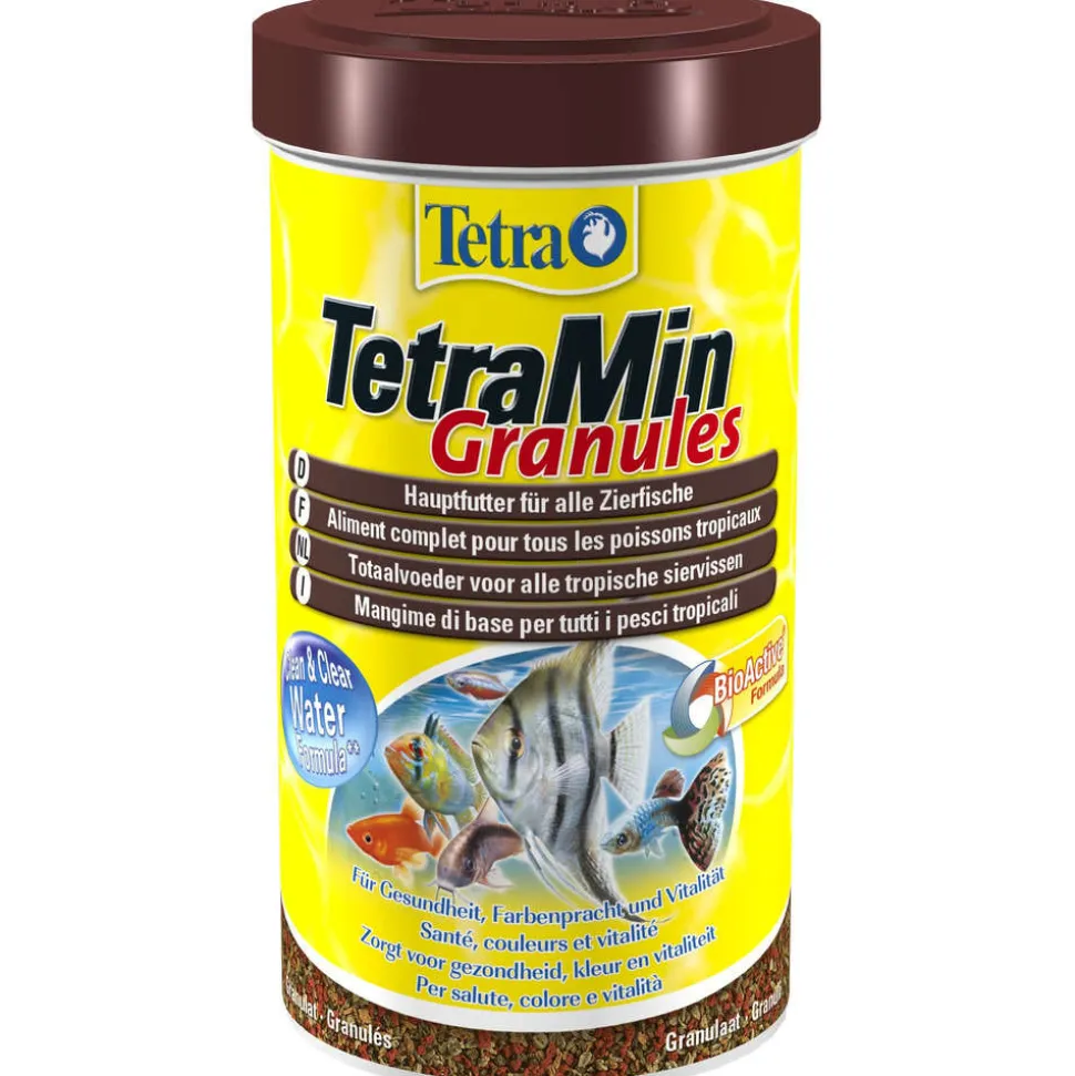 Cette nourriture pour poissons Tetramin, complète et équilibrée, est spécialement adaptée aux besoins des poissons tropicaux. Composée d’un mélange de 4 granulés riches en protéines et lécithine pour la vitalité ; en caroténoïde pour des couleurs naturelles intensifiées et en vitamines pour la croissance, cette nourriture apporte toutes les substances nutritives essentielles au bien-être de vos poissons. Vendue en boîte de 500mL.