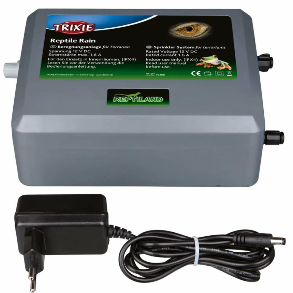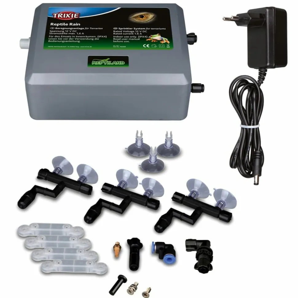 Ce brumisateur pour vivarium à reptile de TRIXIE constitue non seulement un système d’irrigation pour terrarium, mais aussi un système d’arrosage pour vos plantes. La pression de la pompe du système du brumisateur se règle sans difficulté et ne nécessite qu’une source d’alimentation à basse tension. Le système est extensible grâce à des pommes d’arrosage supplémentaires, que l’on pourra relier au système déjà en place grâce à des fixations prévues à cet effet.