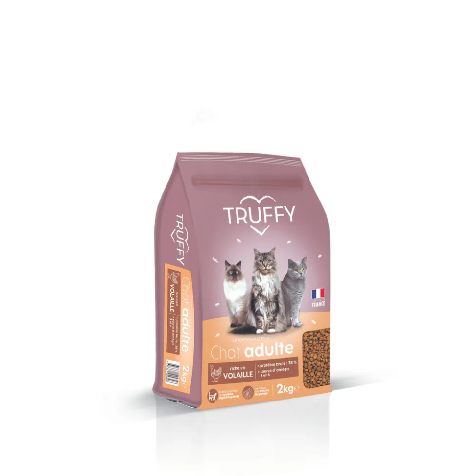 Truffy a été spécialement conçu pour répondre aux besoins nutritionnels de vos animaux de compagnie. Les croquettes pour chat adulte sont équilibrées, source de nutriments et de saveurs gourmandes pour votre compagnon. Soucieux d’offrir ce qu’il y a de meilleur à votre chat, Truffy garantit la sélection rigoureuse des ingrédients et un apport maîtrisé des nutriments essentiels pour son bien-être et sa vitalité.