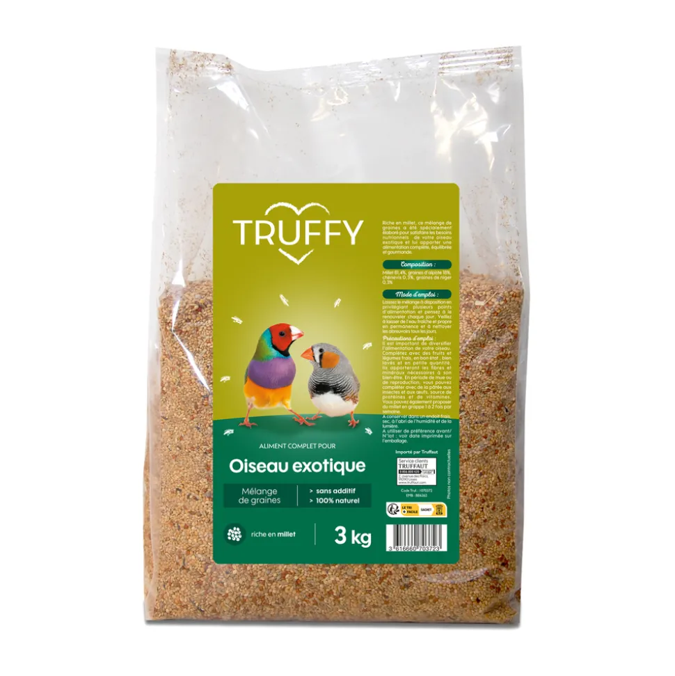 Riche en millet, ce mélange de graines a été spécialement élaboré pour satisfaire les besoins nutritionnels de vos oiseaux exotiques. Il leur apporte une alimentation aussi complète et équilibrée que gourmande. Mélange de graines pour oiseaux exotiques 3 kg.