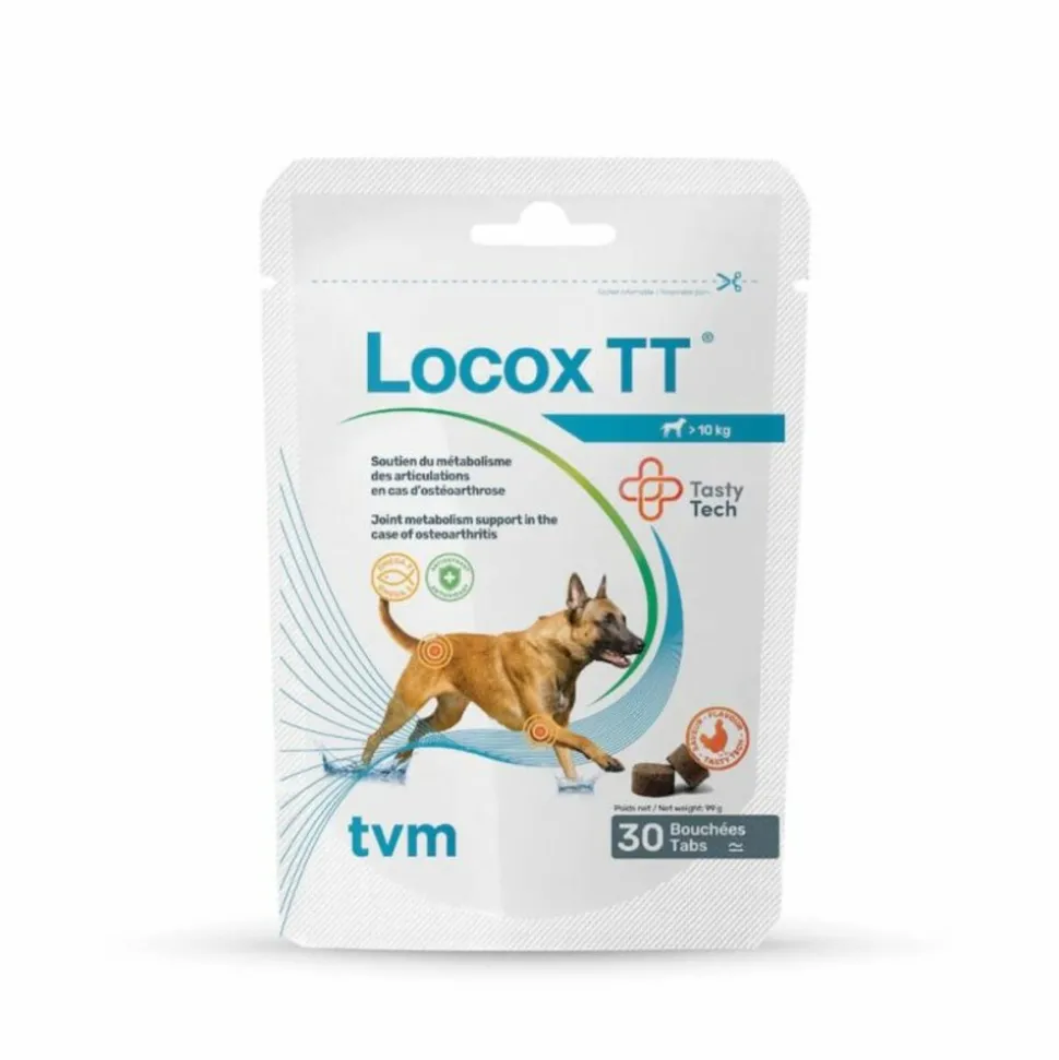 LOCOX TT BOUCHEES – TVM est un un complément alimentaire pour chiens destiné au soutien du métabolisme des articulations en cas d’ostéoarthrose.