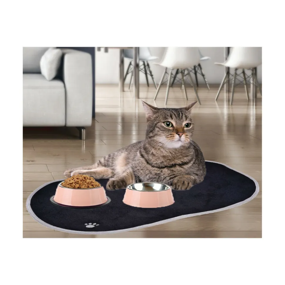 SYSTEME ABSORBANT: Le tapis en microfibre est conçu pour sécher rapidement grâce à son système absorbant qui garantit un sol toujours sec près des gamelles de vos animaux de compagnie.