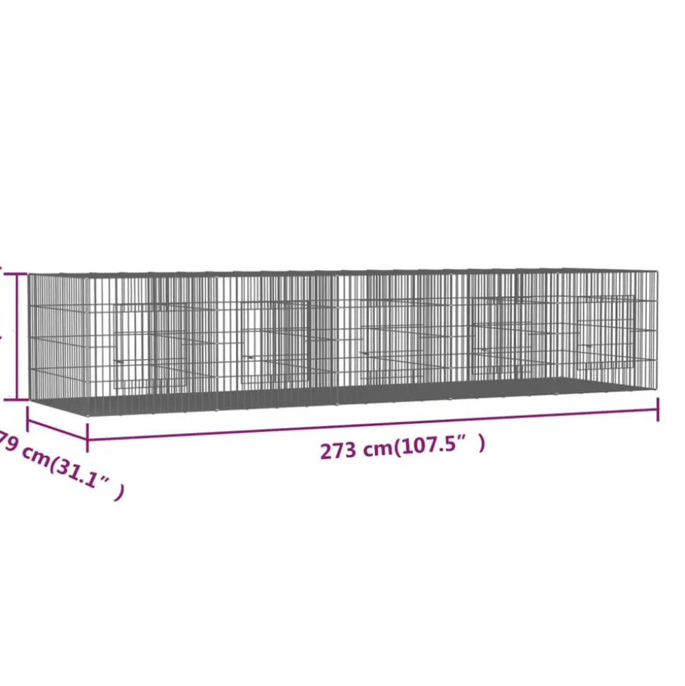 Cette cage à lapin est un excellent choix pour loger en toute sécurité de petits animaux tels que des lapins. Matériau durable : ce clapier est fabriqué en fer galvanisé, robuste et durable, ce qui garantit des années d’utilisation avec peu d’entretien.Conception ventilée : la cage à lapin conçue avec un cadre en fil de fer la rend bien ventilée pour garder l’air frais et propre, ce qui est bénéfique pour la santé de vos amis à fourrure bien-aimés.Compartiment séparé : le parc à lapins est divisé en plusieurs compartiments avec des panneaux, permettant à certains lapins de vivre ensemble. Couleur : argentéMatériau : fer galvaniséDimensions : 273 x 79 x 54 cm (L x l x H)Taille du panneau : 54 x 54 cm (L x l) / 78 x 54 cm (L x l)Taille de la maille : 3 x 13,5 cm (L x l)L’assemblage est requis Attention ! Les fils métalliques peuvent être pointus et tranchants ! Portez des chaussures de sécurité et des gants de protection lors de l’installation !Couleur : argentéMatériau : fer galvaniséDimensions : 273 x 79 x 54 cm (L x l x H)Taille du panneau : 54 x 54 cm (L x l) / 78 x 54 cm (L x l)Taille de la maille : 3 x 13,5 cm (L x l)L’assemblage est requis