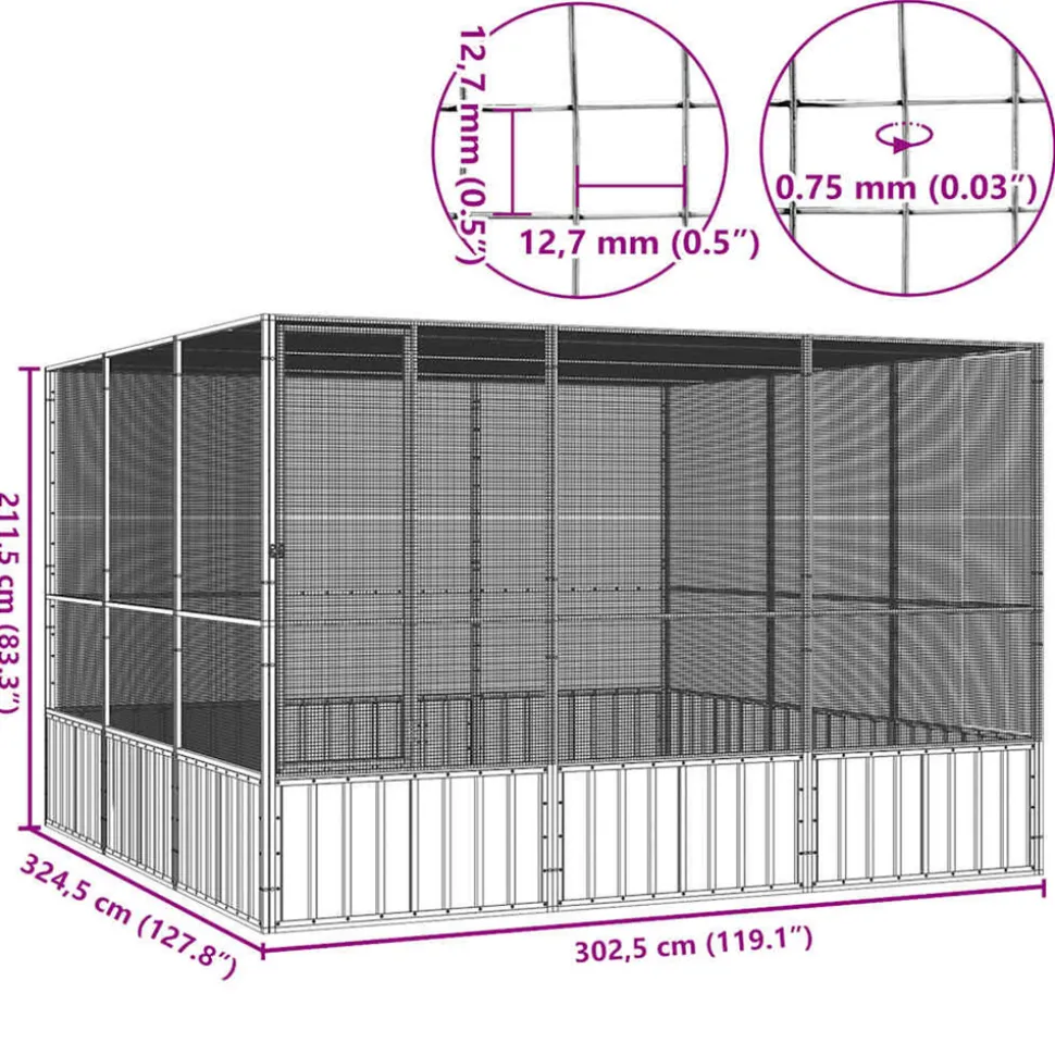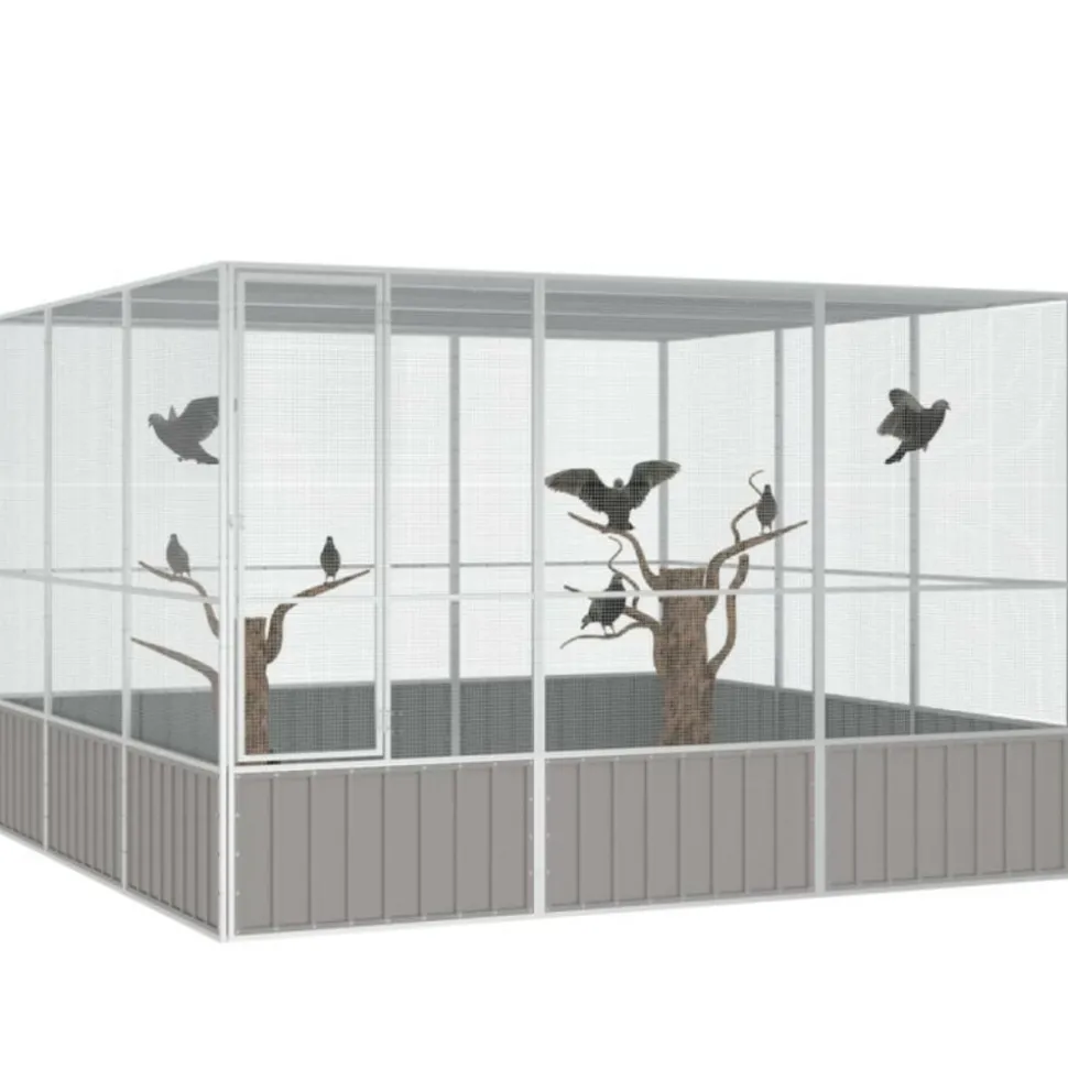 Cette cage à oiseaux offre un grand endroit confortable pour que vos oiseaux volent et jouent en toute sécurité. Volière tout-en-un : la cage polyvalente offre de multiples usages : jouer, faire de l’exercice, dresser ou simplement garder vos oiseaux en sécurité. Ce sera le paradis de jeu parfait pour vos oiseaux !Cadre robuste : grâce à la construction robuste en acier galvanisé, cette cage à perruches est durable et conçue pour durer.Sécurité supplémentaire : la porte à charnière avec un système de verrouillage verrouillable de la cage à perroquet assure une sécurité supplémentaires pour vos oiseaux.Design ventilé : la grande cage à oiseaux a un design en maille, ce qui la rend bien ventilée pour garder l’air frais et propre. Ainsi, la volière extérieure est bénéfique pour la santé de vos petits amis à plumes bien-aimés. Remarque :Chaque produit est livré avec un manuel de montage dans la boîte pour un montage facile. Couleur : grisMatériau : acier galvaniséDimensions : 302,5 x 324,5 x 211,5 cm (l x P x H)Dimensions de la porte : 48 x 152,5 cm (l x H)Couleur : grisMatériau : acier galvaniséDimensions : 302,5 x 324,5 x 211,5 cm (l x P x H)Dimensions de la porte : 48 x 152,5 cm (l x H)