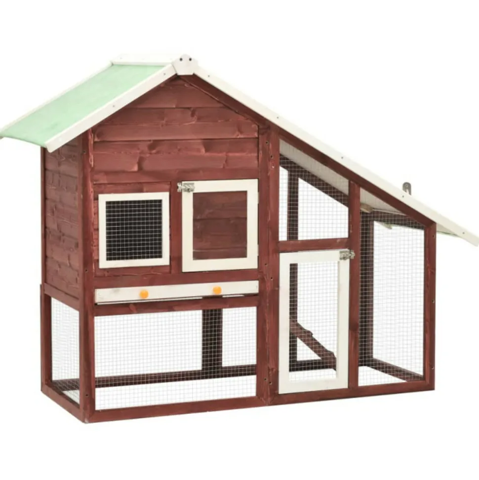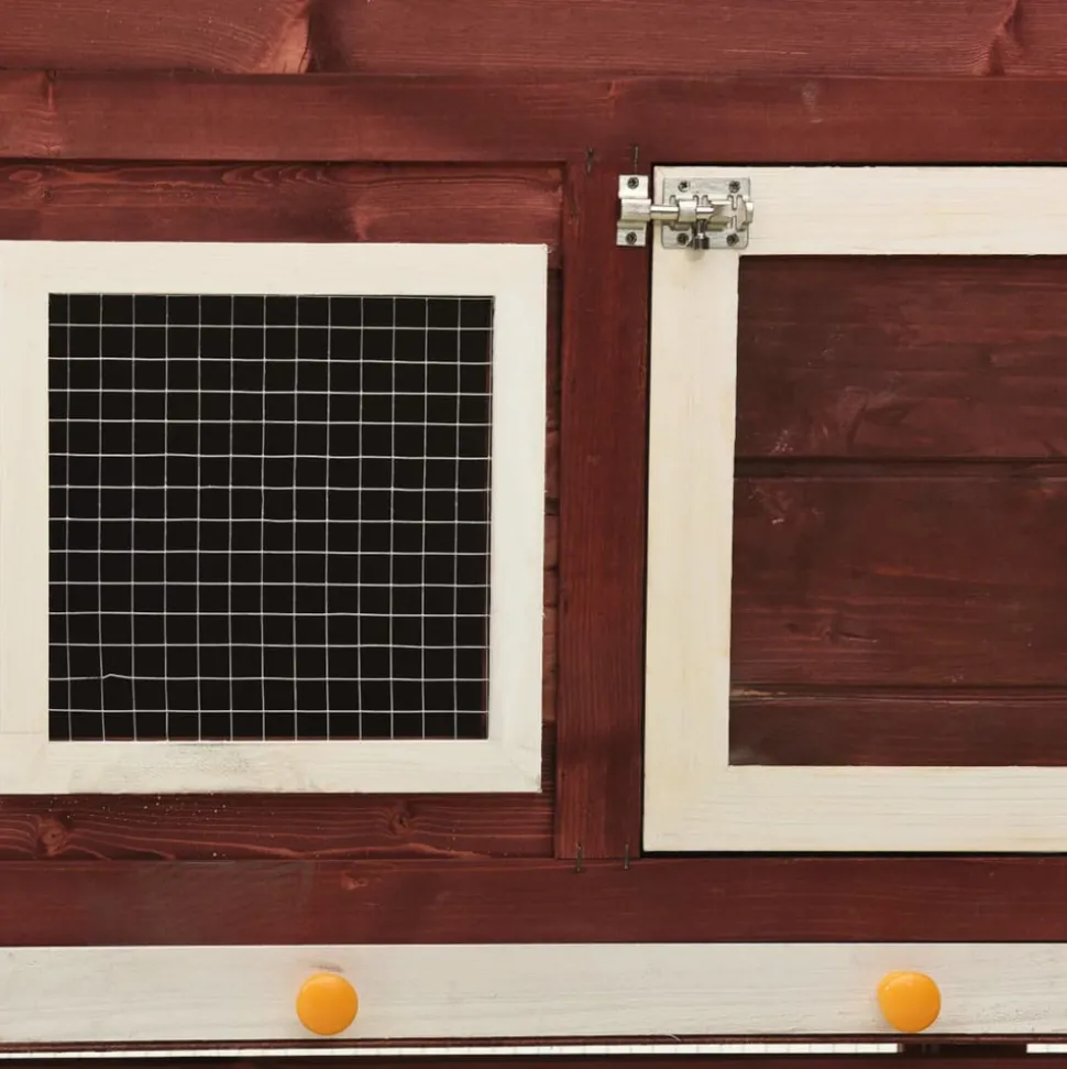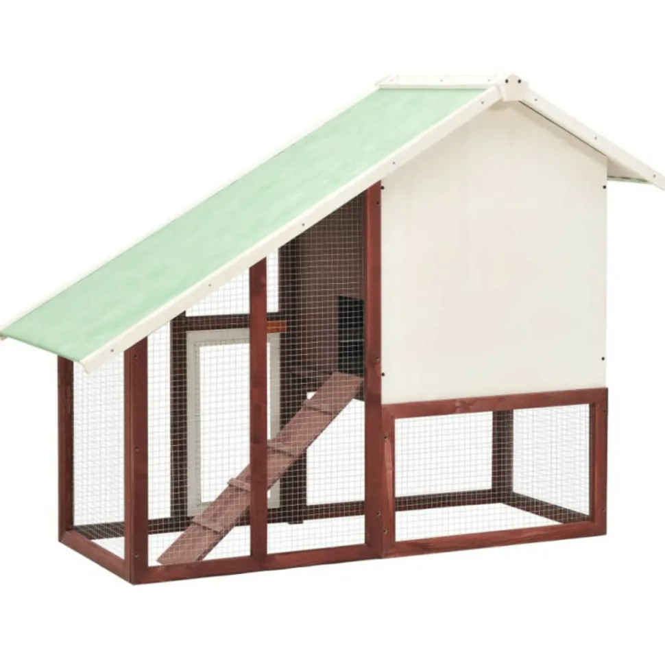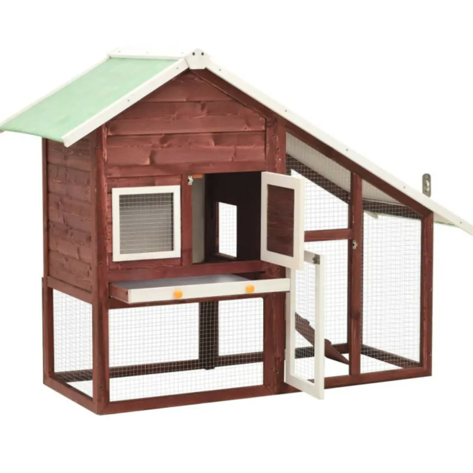 Ce clapier en bois sur 2 niveaux offre un endroit agréable et confortable pour garder des petits animaux, particulièrement des lapins mignons. Il a plusieurs usages : jouer, faire de l’exercice, s’entraîner ou simplement garder vos animaux en toute sécurité. Ce clapier à lapin offre à vos animaux de compagnie beaucoup d’espace pour faire de l’exercice, tandis que le grillage métallique serré aide à prévenir les comportements malveillants et les accidents inattendus. De plus, la construction en grille de fil d’acier assure votre surveillance des animaux de compagnie et permet à vos animaux de garder un œil sur l’environnement et obtenir assez d’air frais. La ferme à lapins permet l’accès par 2 portes et est construite avec un cadre en bois de sapin massif, ce qui la rend stable et durable. De plus, le toit vert inclinable est recouvert de tissu résistant à l’eau et empêche la pluie de pénétrer à l’intérieur. Un tiroir doublé de tôle est utilisé pour faciliter le nettoyage du clapier à lapins. Le clapier offre un endroit parfait pour dormir. De plus, la rampe facile à monter mène du niveau inférieur au niveau supérieur et le plateau coulissant facilite le nettoyage. Remarque importante : nous vous recommandons de placer le clapier sous un abri. En conséquence, cela durera plus longtemps. Couleur : moka et blancMatériau : bois de pin massif avec finition à base d’eau, contreplaqué, fil d’acierDimensions totales : 140 x 63 x 120 cm (l x P x H)Dimensions du corps de la cage : 121 x 53 x 116 cm (l x P x H)Dimensions intérieures : 118 x 45 x 115 cm (l x P x H)Poids net : 18,3 kgToit recouvert d’un tissu résistant à l’eau (100 % polyester)Avec une rampe antidérapante pour faciliter l’accès au niveau supérieurUn bac coulissant pour un nettoyage facileConvient aux lapinsL’assemblage est requisCouleur : moka et blancMatériau : bois de pin massif avec finition à base d’eau, contreplaqué, fil d’acierDimensions totales : 140 x 63 x 120 cm (l x P x H)Dimensions du corps de la cage : 121 x 53 x 116 cm (l x P x H)Dimensions intérieures : 118 x 45 x 115 cm (l x P x H)Poids net : 18,3 kgToit recouvert d’un tissu résistant à l’eau (100 % polyester)Avec une rampe antidérapante pour faciliter l’accès au niveau supérieurUn bac coulissant pour un nettoyage facileConvient aux lapinsL’assemblage est requis