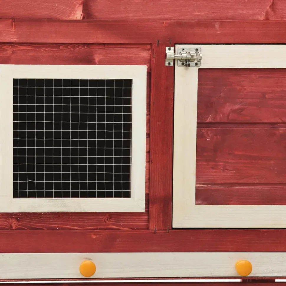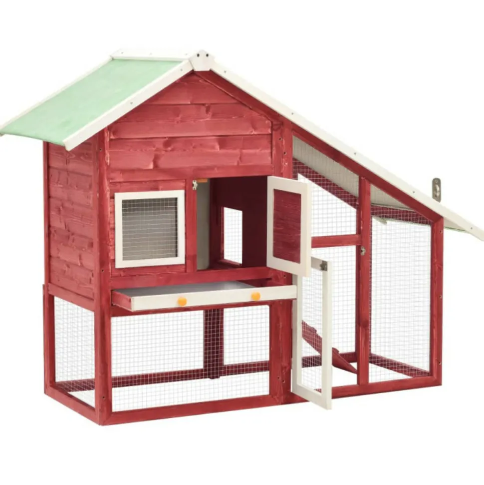 Ce clapier en bois sur 2 niveaux offre un endroit agréable et confortable pour garder des petits animaux, particulièrement des lapins mignons. Il a plusieurs usages : jouer, faire de l’exercice, s’entraîner ou simplement garder vos animaux en toute sécurité. Ce clapier à lapin offre à vos animaux de compagnie beaucoup d’espace pour faire de l’exercice, tandis que le grillage métallique serré aide à prévenir les comportements malveillants et les accidents inattendus. De plus, la construction en grille de fil d’acier assure votre surveillance des animaux de compagnie et permet à vos animaux de garder un œil sur l’environnement et obtenir assez d’air frais. La ferme à lapins permet l’accès par 2 portes et est construite avec un cadre en bois de sapin massif, ce qui la rend stable et durable. De plus, le toit vert inclinable est recouvert de tissu résistant à l’eau et empêche la pluie de pénétrer à l’intérieur. Un tiroir doublé de tôle est utilisé pour faciliter le nettoyage du clapier à lapins. Le clapier offre un endroit parfait pour dormir. De plus, la rampe facile à monter mène du niveau inférieur au niveau supérieur et le plateau coulissant facilite le nettoyage. Remarque importante : nous vous recommandons de placer le clapier sous un abri. En conséquence, cela durera plus longtemps. Couleur : Rouge et blancMatériau : bois de pin massif avec finition à base d’eau, contreplaqué, fil d’acierDimensions totales : 140 x 63 x 120 cm (l x P x H)Dimensions du corps de la cage : 121 x 53 x 116 cm (l x P x H)Dimensions intérieures : 118 x 45 x 115 cm (l x P x H)Poids net : 18,3 kgToit recouvert d’un tissu résistant à l’eau (100 % polyester)Avec une rampe antidérapante pour faciliter l’accès au niveau supérieurUn bac coulissant pour un nettoyage facileConvient aux lapinsL’assemblage est requisCouleur : Rouge et blancMatériau : bois de pin massif avec finition à base d’eau, contreplaqué, fil d’acierDimensions totales : 140 x 63 x 120 cm (l x P x H)Dimensions du corps de la cage : 121 x 53 x 116 cm (l x P x H)Dimensions intérieures : 118 x 45 x 115 cm (l x P x H)Poids net : 18,3 kgToit recouvert d’un tissu résistant à l’eau (100 % polyester)Avec une rampe antidérapante pour faciliter l’accès au niveau supérieurUn bac coulissant pour un nettoyage facileConvient aux lapinsL’assemblage est requis