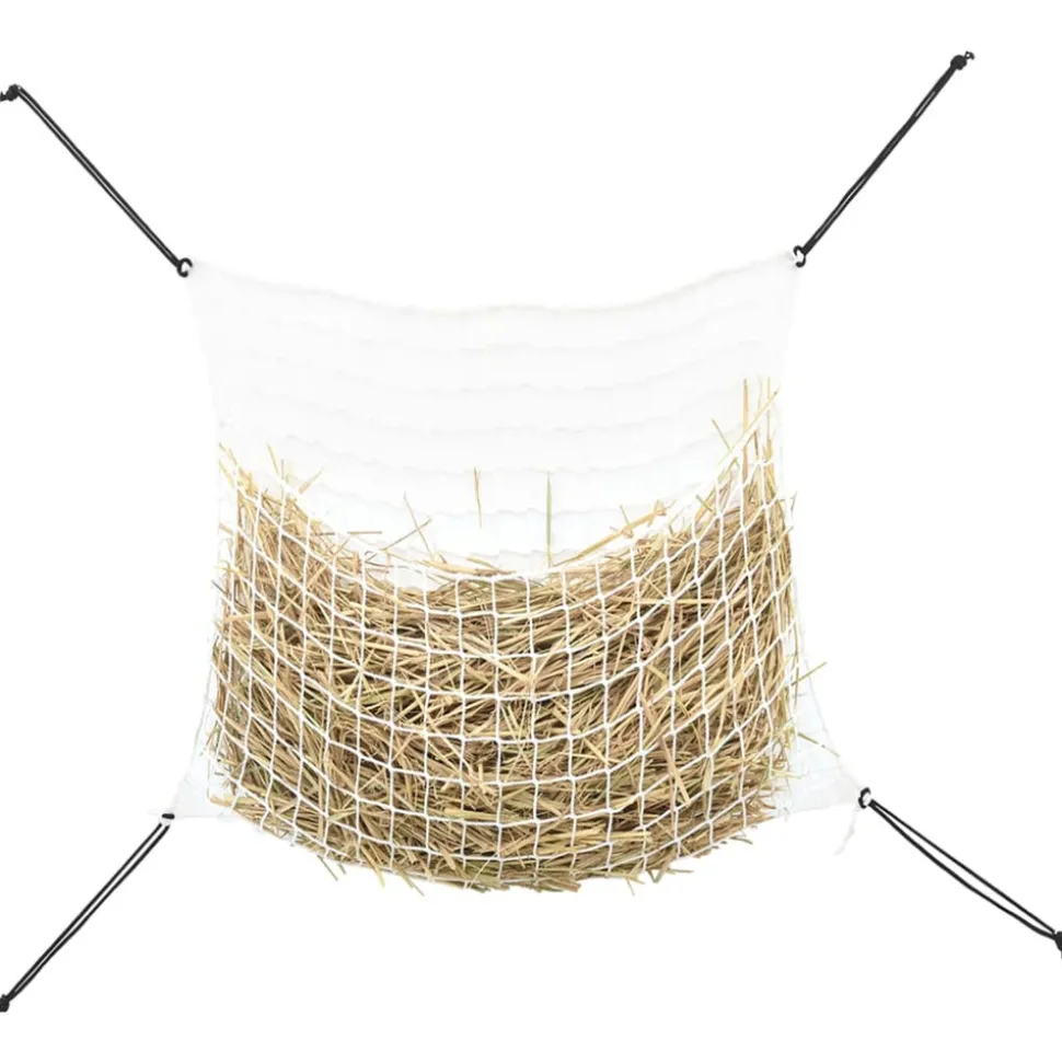 Cet ensemble de 2 filets à foin résistant est idéal pour garder la nourriture des cheveux ou des poneys. Pratique et fonctionnel : ce filet à foin permet de réguler le rythme alimentaire des chevaux, d’éviter qu’ils ne mangent trop et de favoriser une digestion saine.Réduction des déchets : le filet empêche le foin d’être piétiné ou dispersé, ce qui permet au cheval d’en consommer une plus grande quantité, réduisant ainsi considérablement les pertes de foin.Commodité : le filet à foin pour alimentation lente est pratique pour nourrir les animaux lorsque vous n’êtes pas à l’étable. Il permet de contenir le foin, d’éviter les dégâts et de faciliter l’alimentation en déplacement.Facile à transporter et à ranger : le filet à foin pour chevaux est pliable, facile à transporter et à ranger, et ne prend pas trop de place.