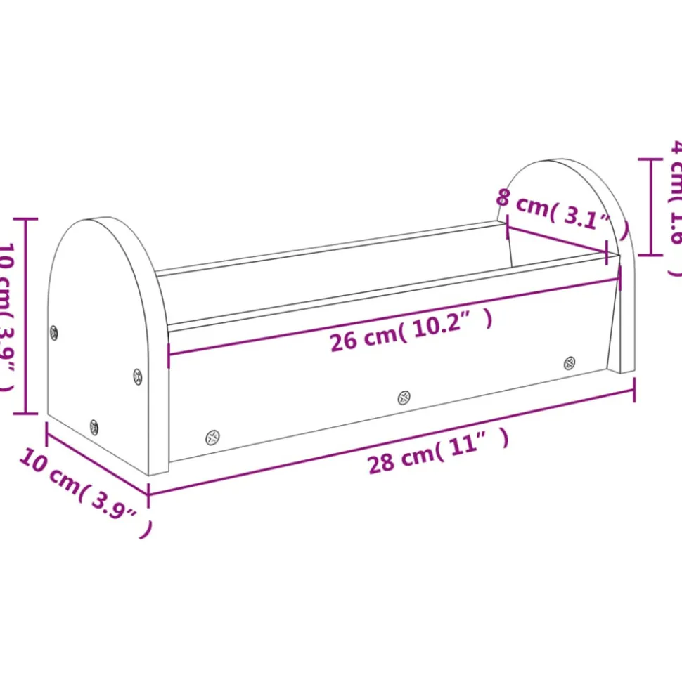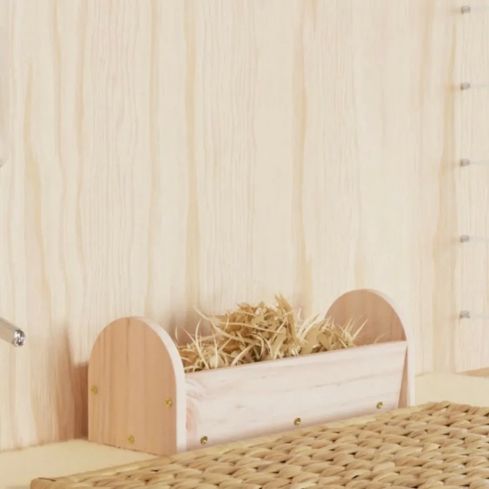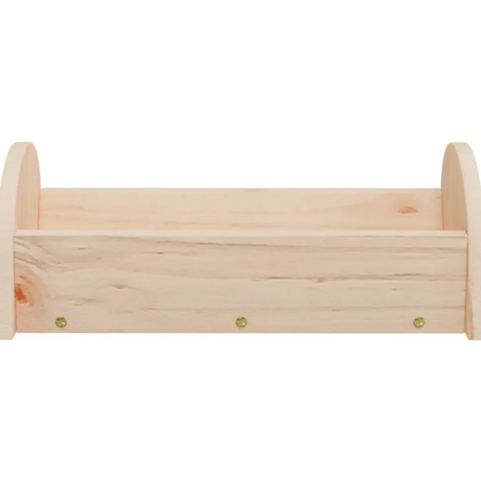 Cette mangeoire à foin en bois pour lapins est spécialement conçue pour les cochons d’Inde, les chinchillas, les lapins et autres petits animaux. Matériau naturel et fiable : cette mangeoire à foin pour lapins est fabriquée en bois de sapin massif non traité, durable, sûr et sans odeur, ce qui en fait un support de foin idéal pour vos animaux de compagnie.Bénéfique pour la santé des animaux de compagnie : la mangeoire à foin en bois pour lapins permet à votre animal de compagnie de rester en bonne santé en empêchant le foin de se mélanger à des aliments non comestibles et en le protégeant de l’urine et des excréments.Nombreuses applications : la taille du râtelier à foin convient à l’alimentation de divers petits animaux, tels que les lapins, les chinchillas, les cochons d’Inde, les hamsters, etc. Matériau : bois massif de sapin (non traité)Dimensions : 28 x 10 x 10 cm (l x P x H)Capacité de charge maximale : 8 kgMatériau : bois massif de sapin (non traité)Dimensions : 28 x 10 x 10 cm (l x P x H)Capacité de charge maximale : 8 kg