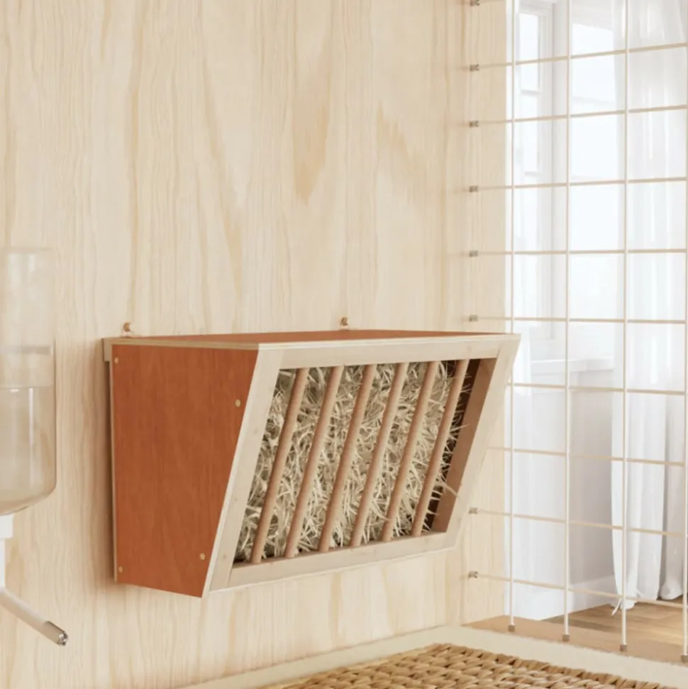 Cette mangeoire à foin en bois pour lapins est spécialement conçue pour les cochons d’Inde, les chinchillas, les lapins et autres petits animaux. Matériau naturel et fiable : ce râtelier à foin pour lapins est fabriqué en bois de sapin massif non traité, durable, sûr et sans odeur, ce qui en fait un support de foin idéal pour vos animaux de compagnie.Bénéfique pour la santé des animaux de compagnie : la mangeoire à foin en bois pour lapins permet à votre animal de compagnie de rester en bonne santé en empêchant le foin de se mélanger à des aliments non comestibles et en le protégeant de l’urine et des excréments.Pratique à utiliser : le haut du porte-foin pour lapin peut être ouvert pour le remplir de foin. Ce porte-foin pour lapins peut être accroché au mur. Vous pouvez également le placer à l’intérieur de la cage. Bon à savoir :Les vis et les chevilles pour l’intérieur du mur ne sont pas incluses. Recherchez et utilisez des vis et des chevilles adaptées à vos murs. Si vous n’êtes pas sûr, demandez conseil à un professionnel. Lisez et suivez attentivement chaque étape des instructions. Matériau : bois massif de sapin (non traité)Dimensions : 37 x 18,5 x 23 cm (l x P x H)Capacité de charge maximale : 8 kgAccessoires de montage inclusMatériau : bois massif de sapin (non traité)Dimensions : 37 x 18,5 x 23 cm (l x P x H)Capacité de charge maximale : 8 kgAccessoires de montage inclus