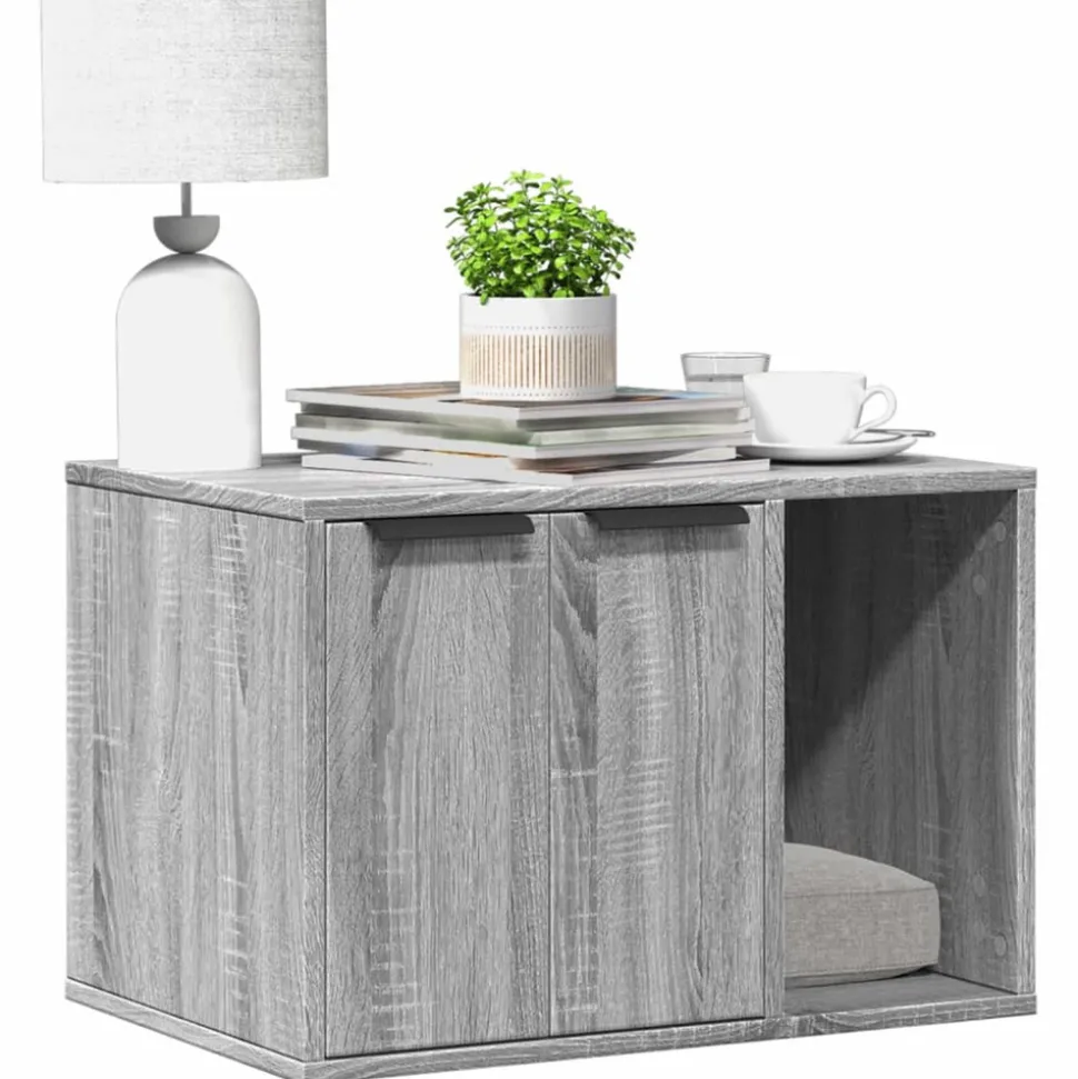 Offrez à votre chat un espace privé confortable avec le meuble de bac à litière pour chat tout en gardant le style de votre maison harmonieux ! Matériau stable et durable : le bois d’ingénierie est un matériau durable et stable dont la surface lisse résiste à l’humidité, à la déformation et au fendillement, ce qui en fait un choix fiable pour divers projets. Conception discrète : le meuble de bac à litière pour chat vous permet de cacher une litière ou un lit pour chat à l’intérieur, ce qui permet de garder la maison propre et de s’intégrer parfaitement à votre espace. Multifonctionnelle : le meuble pour bac à litière sert non seulement de maison confortable pour le chat, mais aussi de table d’appoint ou d’armoire de rangement pratique, tandis que la plate-forme supérieure offre un espace idéal pour exposer des cadres photo, des plantes et d’autres petits objets décoratifs. Installation personnalisable : vous pouvez placer les portes à gauche ou à droite de l’ouverture de l’armoire, selon vos préférences personnelles ou l’espace requis. Entretien facile : grâce à sa surface lisse, le meuble de bac à litière pour chats est facile à nettoyer avec un chiffon humide et nécessite moins d’entretien. Bon à savoir :Le coussin affiché sur l’image est fourni à titre d’illustration uniquement et n’est pas inclus dans la livraison.