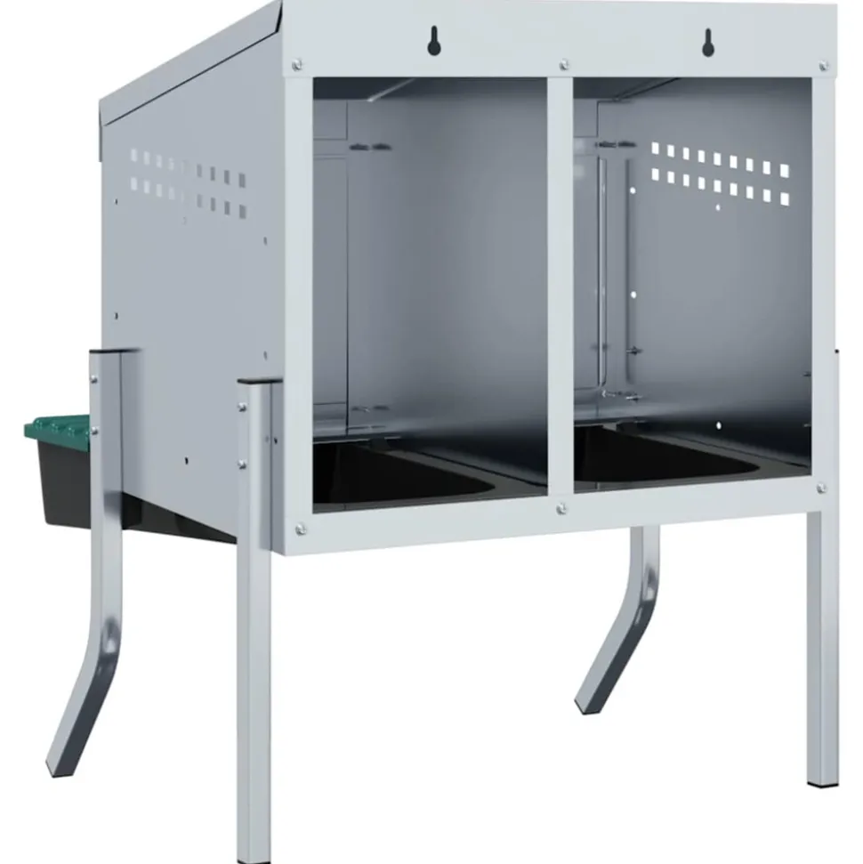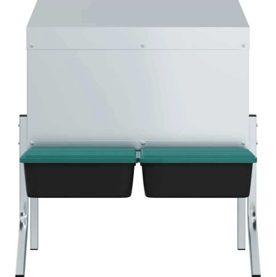 Améliorez votre expérience d’élevage de volailles avec le pondoir à poules, offrant à vos poules un espace de ponte privé et confortable. Matériau robuste et durable : Fabriqué en acier galvanisé et en plastique polypropylène robuste, ce pondoir est conçu pour durer, offrant des performances durables et une protection à vos poules contre les conditions extérieures difficiles.Collecte des œufs pratique : Le couvercle facile à soulever et la conception coulissante permettent une collecte des œufs sans effort tout en gardant les poules tranquilles. La conception réfléchie favorise un environnement calme pour votre troupeau, rendant la collecte des œufs fluide, sans tracas et facile à entretenir.Hauteur personnalisable : Le pondoir est simple à installer, car il est livré avec les accessoires nécessaires. Grâce à des trous de perçage supplémentaires, vous pouvez personnaliser l’installation des pieds à deux hauteurs différentes. Suivez simplement les instructions fournies pour une installation facile.Ventilation réfléchie : Le nichoir est conçu avec des bouches d’aération et une façade ouverte pour assurer une circulation d’air optimale, maintenant un environnement sec, sans odeur et confortable pour vos poules tout en empêchant l’accumulation d’humidité et d’odeurs.Nettoyage sans effort : Le plateau est facilement amovible pour un nettoyage rapide, tandis que les surfaces lisses du plateau et du nichoir garantissent une expérience sans tracas, contribuant à maintenir un environnement plus propre et plus hygiénique pour vos poules. Bon à savoir :Pour éviter les rayures, il est recommandé de porter des gants lors de l’installation.