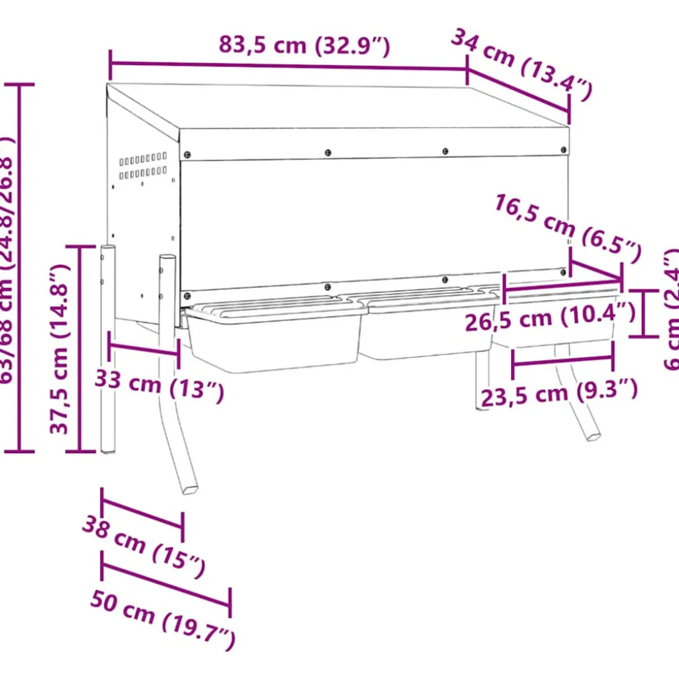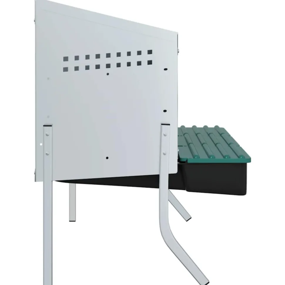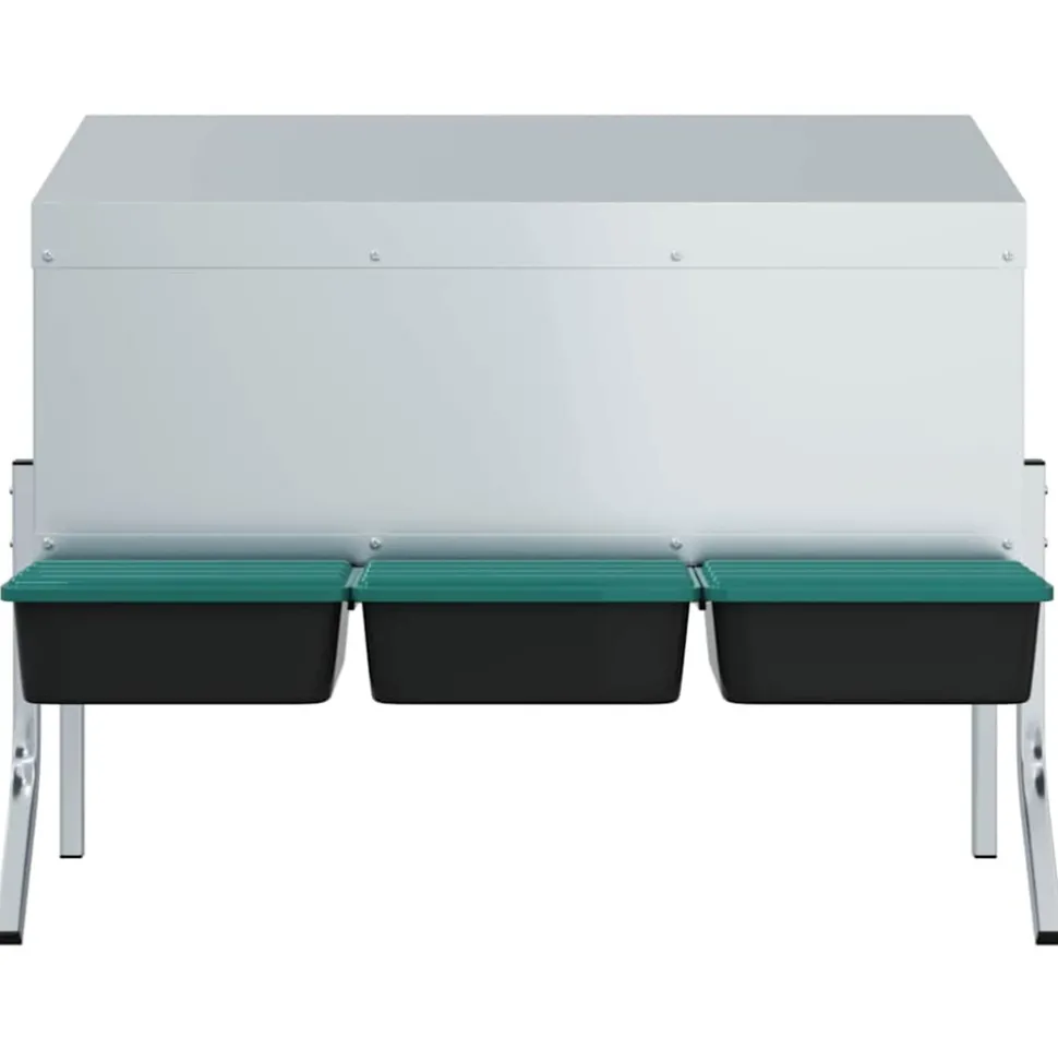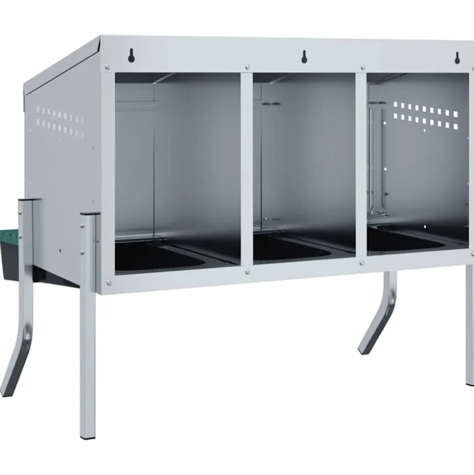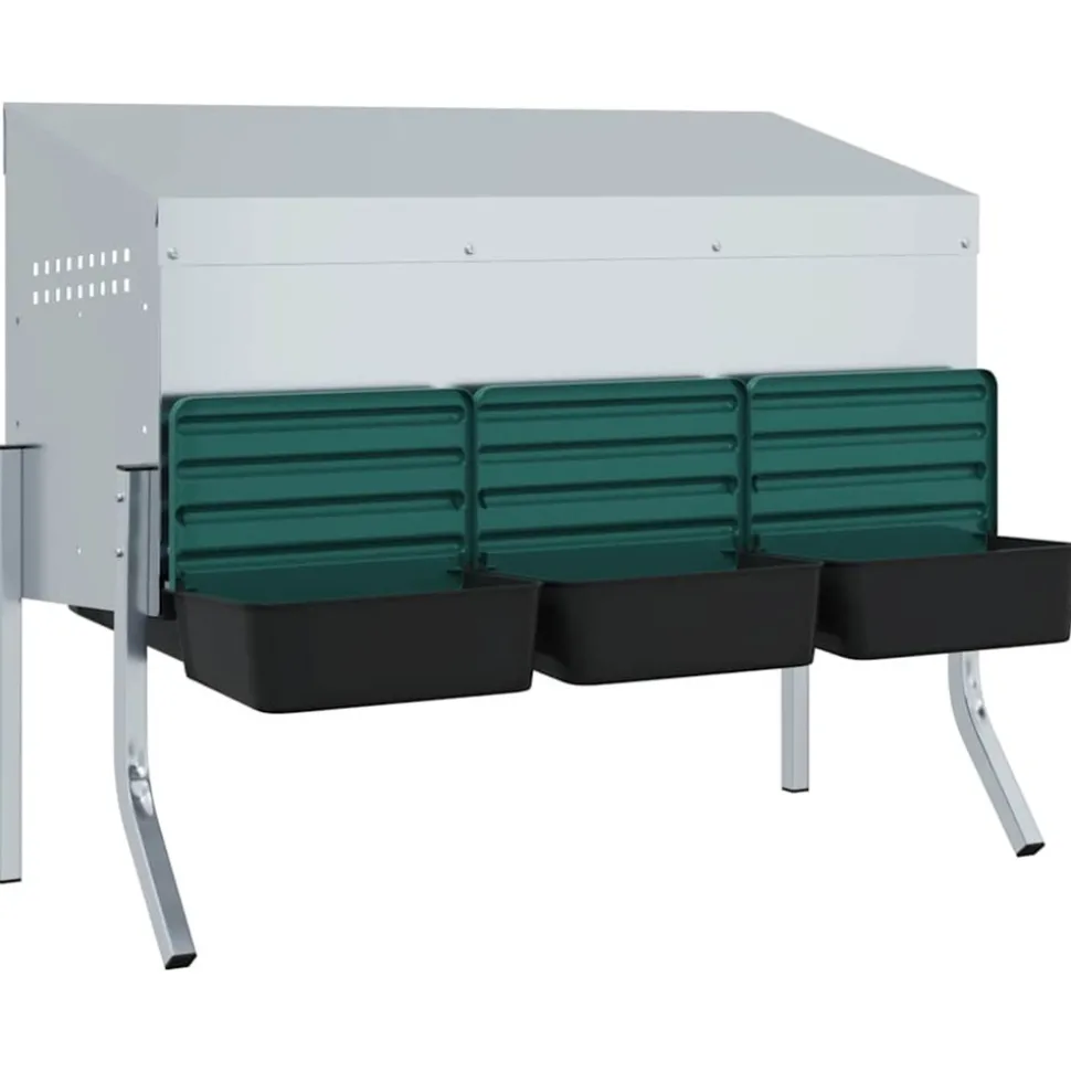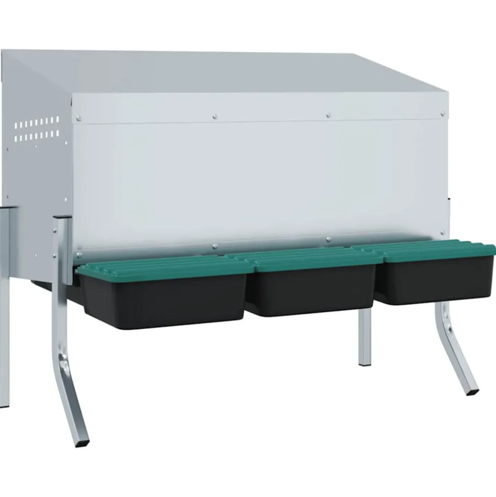 Améliorez votre expérience d’élevage de volailles avec le pondoir à poules, offrant à vos poules un espace de ponte privé et confortable. Matériau robuste et durable : Fabriqué en acier galvanisé et en plastique polypropylène robuste, ce pondoir est conçu pour durer, offrant des performances durables et une protection à vos poules contre les conditions extérieures difficiles.Collecte des œufs pratique : Le couvercle facile à soulever et la conception coulissante permettent une collecte des œufs sans effort tout en gardant les poules tranquilles. La conception réfléchie favorise un environnement calme pour votre troupeau, rendant la collecte des œufs fluide, sans tracas et facile à entretenir.Hauteur personnalisable : Le pondoir est simple à installer, car il est livré avec les accessoires nécessaires. Grâce à des trous de perçage supplémentaires, vous pouvez personnaliser l’installation des pieds à deux hauteurs différentes. Suivez simplement les instructions fournies pour une installation facile.Ventilation réfléchie : Le nichoir est conçu avec des bouches d’aération et une façade ouverte pour assurer une circulation d’air optimale, maintenant un environnement sec, sans odeur et confortable pour vos poules tout en empêchant l’accumulation d’humidité et d’odeurs.Nettoyage sans effort : Le plateau est facilement amovible pour un nettoyage rapide, tandis que les surfaces lisses du plateau et du nichoir garantissent une expérience sans tracas, contribuant à maintenir un environnement plus propre et plus hygiénique pour vos poules. Bon à savoir :Pour éviter les rayures, il est recommandé de porter des gants lors de l’installation.