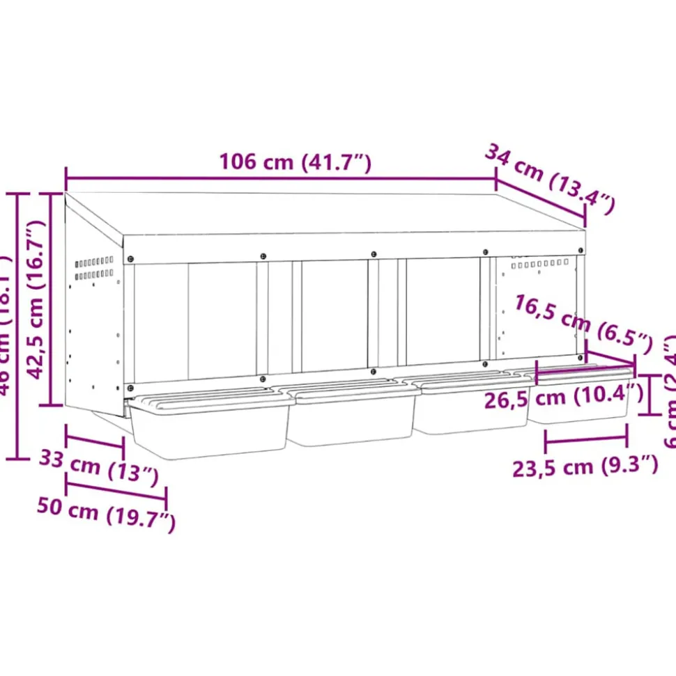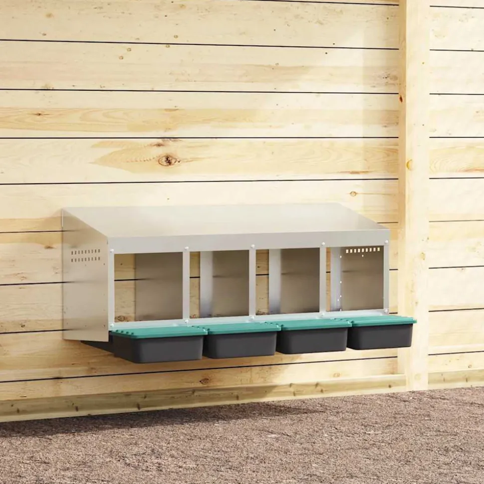 Améliorez votre expérience d’élevage de volailles avec le nichoir à poulets, offrant aux poules un espace de ponte privé et confortable. Matériau robuste et durable : Fabriqué en acier galvanisé et en plastique polypropylène robuste, ce nichoir est conçu pour durer, offrant des performances durables et une protection à vos poules contre les conditions extérieures difficiles.Collecte des œufs pratique : Le couvercle facile à soulever et la conception déroulante permettent une collecte des œufs sans effort tout en gardant les poules tranquilles. Sa conception bien pensée favorise un environnement calme pour votre troupeau, rendant la collecte des œufs fluide, sans tracas et facile à entretenir.Conception peu encombrante : la structure murale de ce pondoir à poules permet d’optimiser l’espace dans votre poulailler, permettant à vos poules de se déplacer plus facilement tout en leur offrant un endroit confortable et sécurisé pour pondre leurs œufs.Ventilation bien pensée : le pondoir est conçu avec des bouches d’aération et une façade ouverte pour assurer une circulation d’air optimale, maintenant un environnement sec, sans odeur et confortable pour vos poules tout en empêchant l’accumulation d’humidité et d’odeurs.Facile à installer : le pondoir est facile à installer, car il comprend tous les accessoires d’installation nécessaires. Il peut être monté sur des surfaces telles que des murs en béton, des murs en briques et des plaques de plâtre. Suivez les instructions fournies pour un processus d’installation simple. Bon à savoir :Pour éviter les rayures, il est recommandé de porter des gants lors de l’installation.