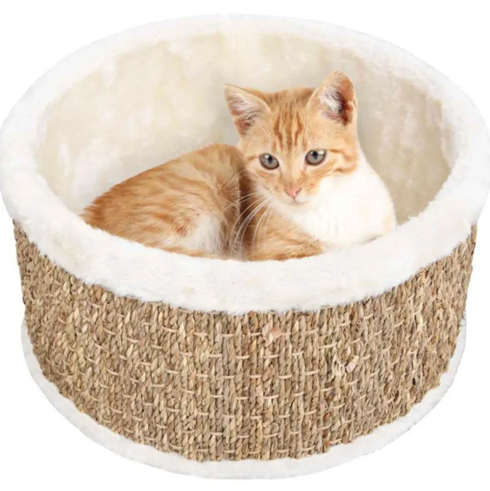 Cet adorable panier pour le chat fournit un lieu de couchage sûr et confortable pour vos beaux chats ! La peluche ultra-doux offre un grand confort, et l’herbe marine environnante permet à vos chats d’aiguiser leurs griffes aussi. Le lit est robuste et léger à transporter. Il est facile à nettoyer et à entretenir. Couleur : beigeMatériau : carton ondulé, peluche, herbe de merDimensions : 36 x 18 cm (Diam. x H)Couleur : beigeMatériau : carton ondulé, peluche, herbe de merDimensions : 36 x 18 cm (Diam. x H)