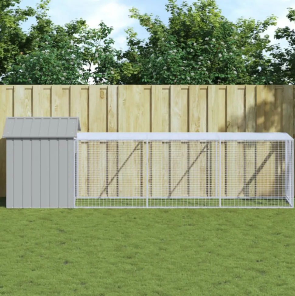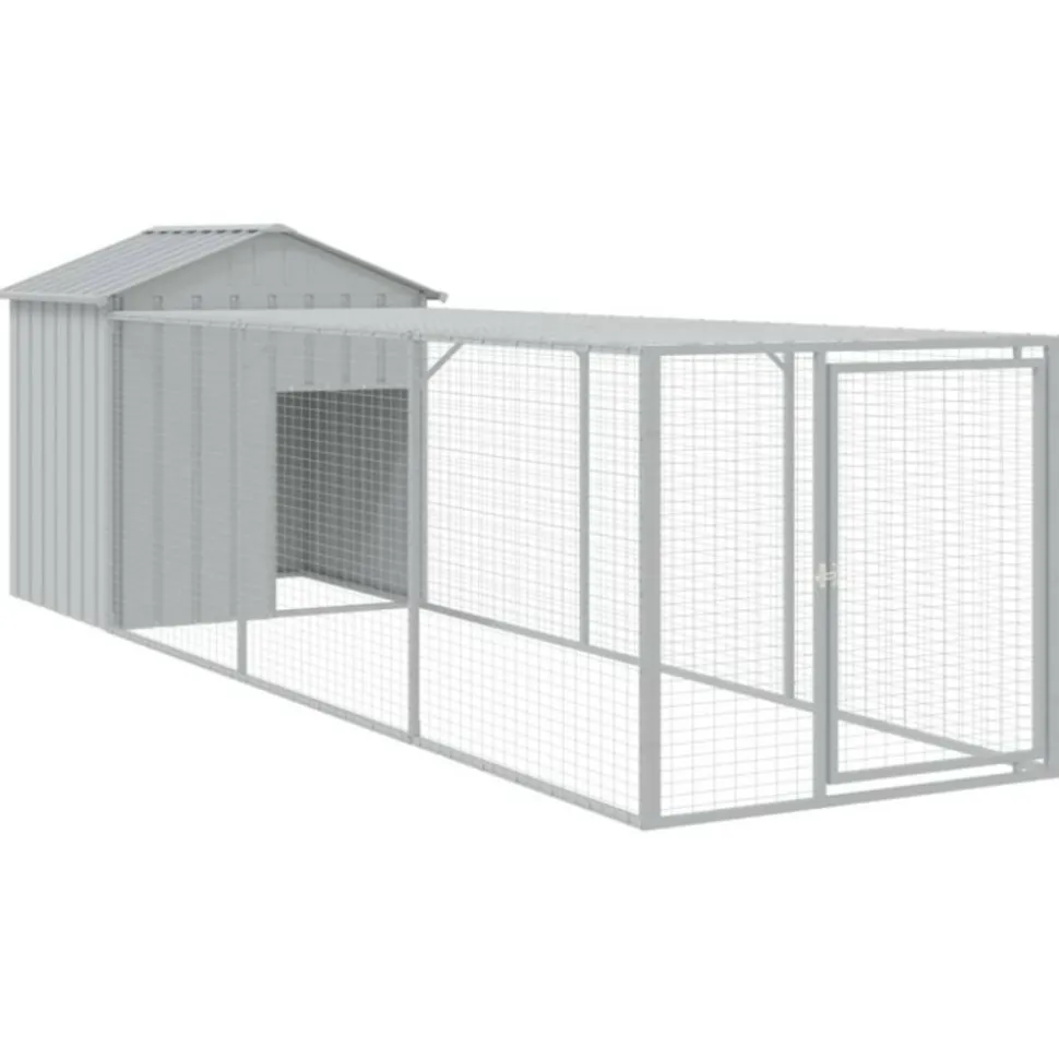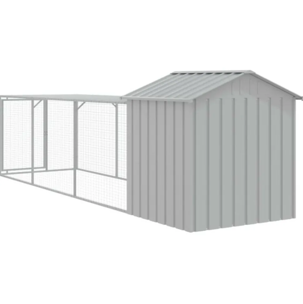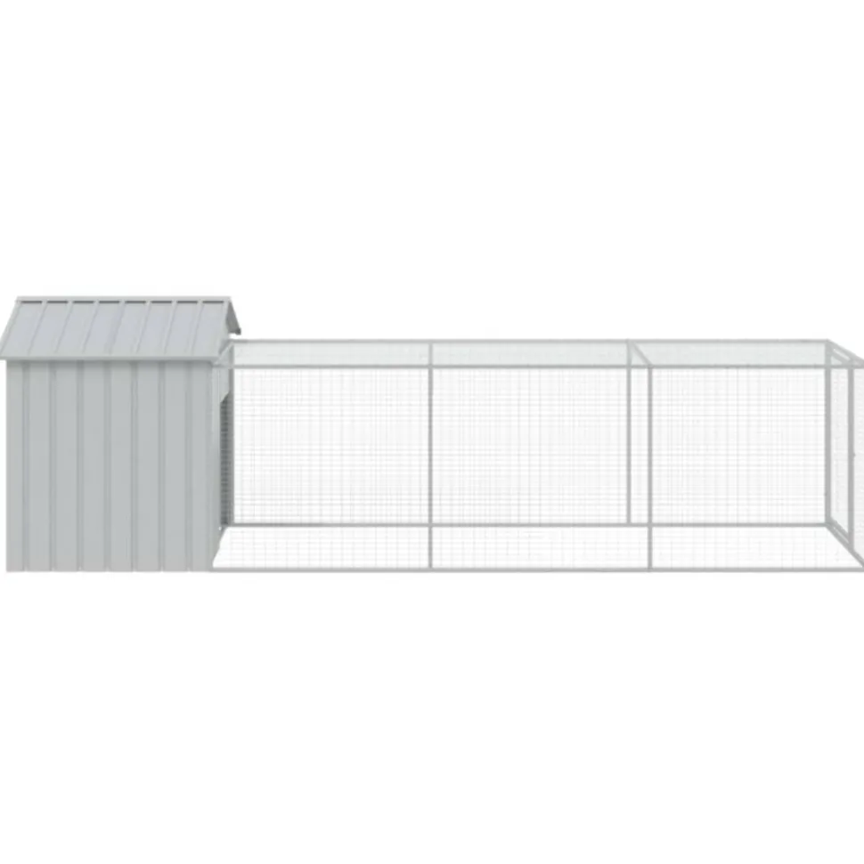 Ce poulailler avec cour est un choix parfait pour vos poulets, poules et autres petits animaux et les maintient à l’aise. Utilisation polyvalente : combiné avec la cour étendue, le poulailler polyvalent offre beaucoup d’espace à vos poules. Il présente de multiples utilisations : jouer, faire de l’exercice ou simplement garder vos poules en sécurité. Ce sera le paradis de jeu parfait pour vos animaux !Construction durable : grâce à sa construction robuste en acier galvanisé, le poulailler est durable et fait pour durer.Conception en maille : la conception en maille du poulailler aide à prévenir les méfaits et les accidents inattendus tout en permettant la ventilation.Toit pratique : le toit du poulailler protège les poulets du soleil, de la pluie, de la neige et d’autres conditions météorologiques.Accès pratique : il y a une entrée à la maison pour animaux et une porte avec un loquet sur la cour prolongée, les deux facilitant l’entrée et la sortie. Couleur : gris clairMatériau : acier galvaniséDimensions totales : 117 x 405 x 123 cm (l x P x H)Poulailler :Dimensions extérieures : 117 x 103 x 123 cm (l x P x H)Dimensions intérieures : 104 x 90 x 120 cm (l x P x H)Taille de l’entrée : 47 x 70 cm (l x H)Cour étendue :Dimensions extérieures : 107 x 307 x 95 cm (l x P x H)Dimensions intérieures : 104 x 304 x 92 cm (l x P x H)Dimensions de la porte : 57 x 86 cm (l x H)L’assemblage est requisLa livraison contient :1 x poulailler1 x cour étendueCouleur : gris clairMatériau : acier galvaniséDimensions totales : 117 x 405 x 123 cm (l x P x H)Poulailler :Dimensions extérieures : 117 x 103 x 123 cm (l x P x H)Dimensions intérieures : 104 x 90 x 120 cm (l x P x H)Taille de l’entrée : 47 x 70 cm (l x H)Cour étendue :Dimensions extérieures : 107 x 307 x 95 cm (l x P x H)Dimensions intérieures : 104 x 304 x 92 cm (l x P x H)Dimensions de la porte : 57 x 86 cm (l x H)L’assemblage est requisLa livraison contient :1 x poulailler1 x cour étendue