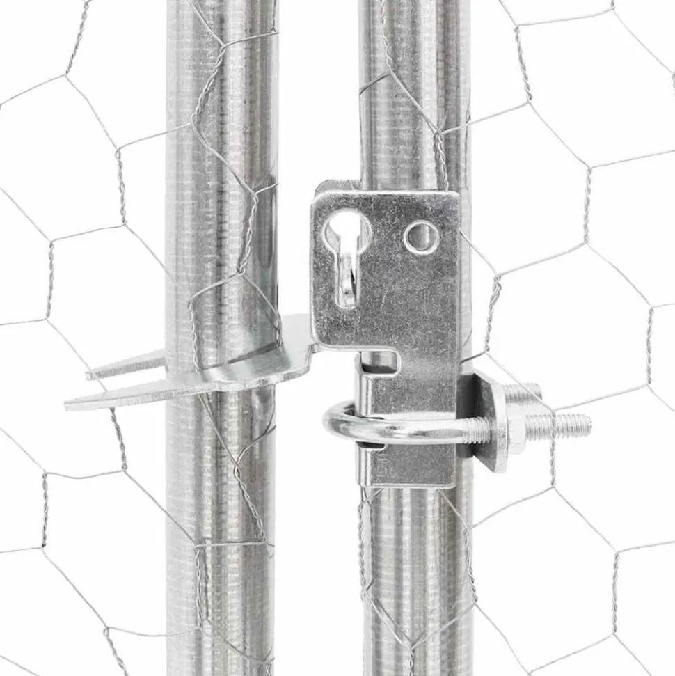Avec ce poulailler, vous pouvez créer un grand espace pour que vos poules puissent courir. Construction robuste : fabriqué à partir d’un cadre en acier galvanisé, ce poulailler assure une durabilité à long terme et une résistance à la rouille, offrant un environnement sécurisé pour vos poulets.Toit résistant à l’eau : le toit résistant à l’eau protège vos poules du soleil et de la pluie, ce qui permet de garder le poulailler sec et d’offrir une protection fiable à vos poules.Conception en maille : le fil à mailles hexagonales offre une excellente protection contre les prédateurs tout en permettant une bonne ventilation, gardant vos poulets en sécurité et à l’aise.Accès pratique : ce poulailler accessible est doté d’une porte verrouillable qui vous permet de nettoyer, de nourrir et d’interagir facilement avec vos poulets tout en empêchant les intrus indésirables d’entrer, vous offrant ainsi une tranquillité d’esprit totale.Utilisation polyvalente : le poulailler polyvalent sert à de multiples fins : jouer, faire de l’exercice, s’entraîner ou simplement assurer la sécurité de vos poules. Il sera le paradis de jeu idéal pour vos animaux, notamment les oiseaux, les lapins, les canards, les oies et bien plus encore.
