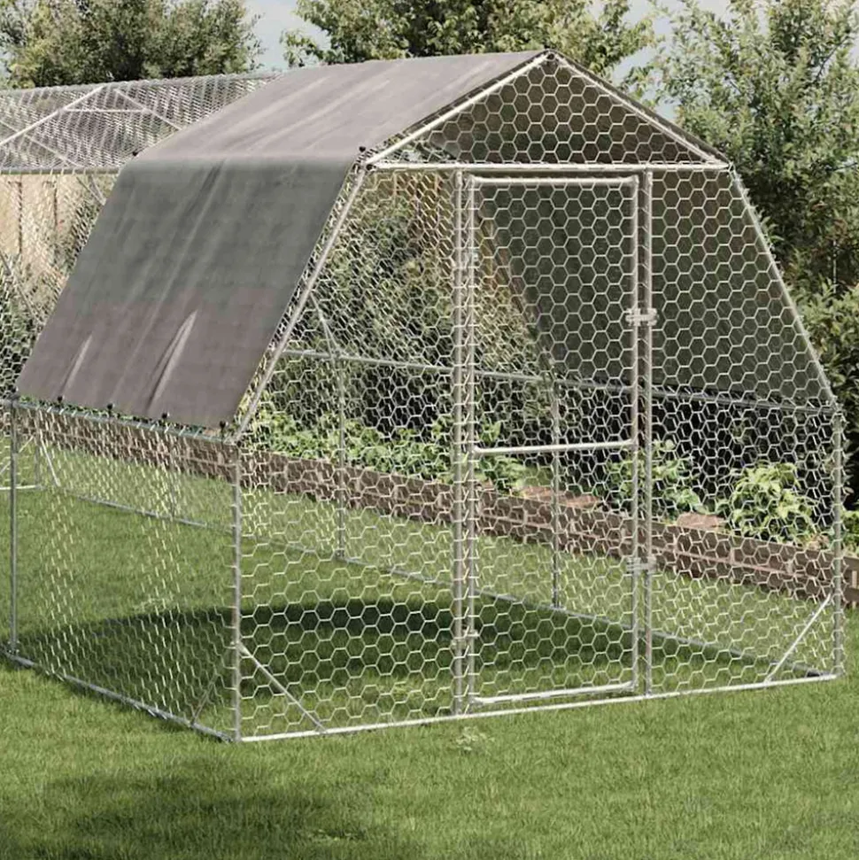 Avec ce poulailler, vous pouvez créer un grand espace pour que vos poules puissent courir. Construction robuste : fabriqué à partir d’un cadre en acier galvanisé, ce poulailler assure une durabilité à long terme et une résistance à la rouille, offrant un environnement sécurisé pour vos poulets.Toit résistant à l’eau : le toit résistant à l’eau protège vos poules du soleil et de la pluie, ce qui permet de garder le poulailler sec et d’offrir une protection fiable à vos poules.Conception en maille : le fil à mailles hexagonales offre une excellente protection contre les prédateurs tout en permettant une bonne ventilation, gardant vos poulets en sécurité et à l’aise.Accès pratique : ce poulailler accessible est doté d’une porte verrouillable qui vous permet de nettoyer, de nourrir et d’interagir facilement avec vos poulets tout en empêchant les intrus indésirables d’entrer, vous offrant ainsi une tranquillité d’esprit totale.Utilisation polyvalente : le poulailler polyvalent sert à de multiples fins : jouer, faire de l’exercice, s’entraîner ou simplement assurer la sécurité de vos poules. Il sera le paradis de jeu idéal pour vos animaux, notamment les oiseaux, les lapins, les canards, les oies et bien plus encore.