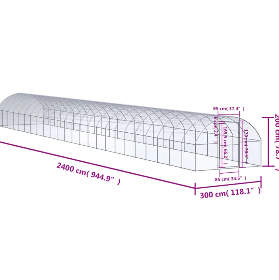Ce poulailler pratique et spacieux est un choix parfait comme enclos d’extérieur pour le confort de vos poules, canards et autres petits animaux. Cette cage à poules est fabriquée en acier galvanisé, ce qui rend la cage stable, durable et facile à nettoyer avec un chiffon humide ou de l’eau du robinet pour un entretien facile. Le poulailler offre suffisamment d’espace pour vos volailles. De plus, grâce au grillage, vous pouvez garder un œil sur vos animaux de compagnie en tout temps. Couleur : argentéMatériau : acier galvaniséDimensions totales : 3 x 24 x 2 m (l x P x H)L’assemblage est requisLa livraison contient :1 x poulailler11 x cadre d’extensionCouleur : argentéMatériau : acier galvaniséDimensions totales : 3 x 24 x 2 m (l x P x H)L’assemblage est requisLa livraison contient :1 x poulailler11 x cadre d’extension